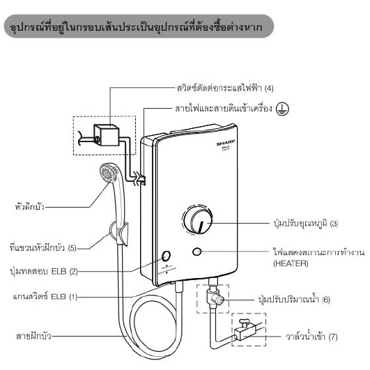 XIX-[HME] SHARP เครื่องทำน้ำอุ่น 3500 W รุ่น WH-34 - มี ELB BREAKER (ราคานี้ยังไม่รวมบริการติดตั้ง)