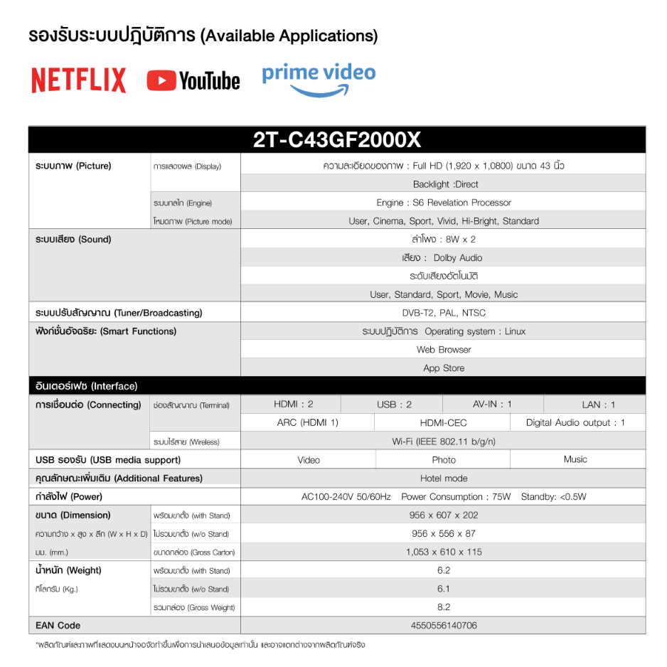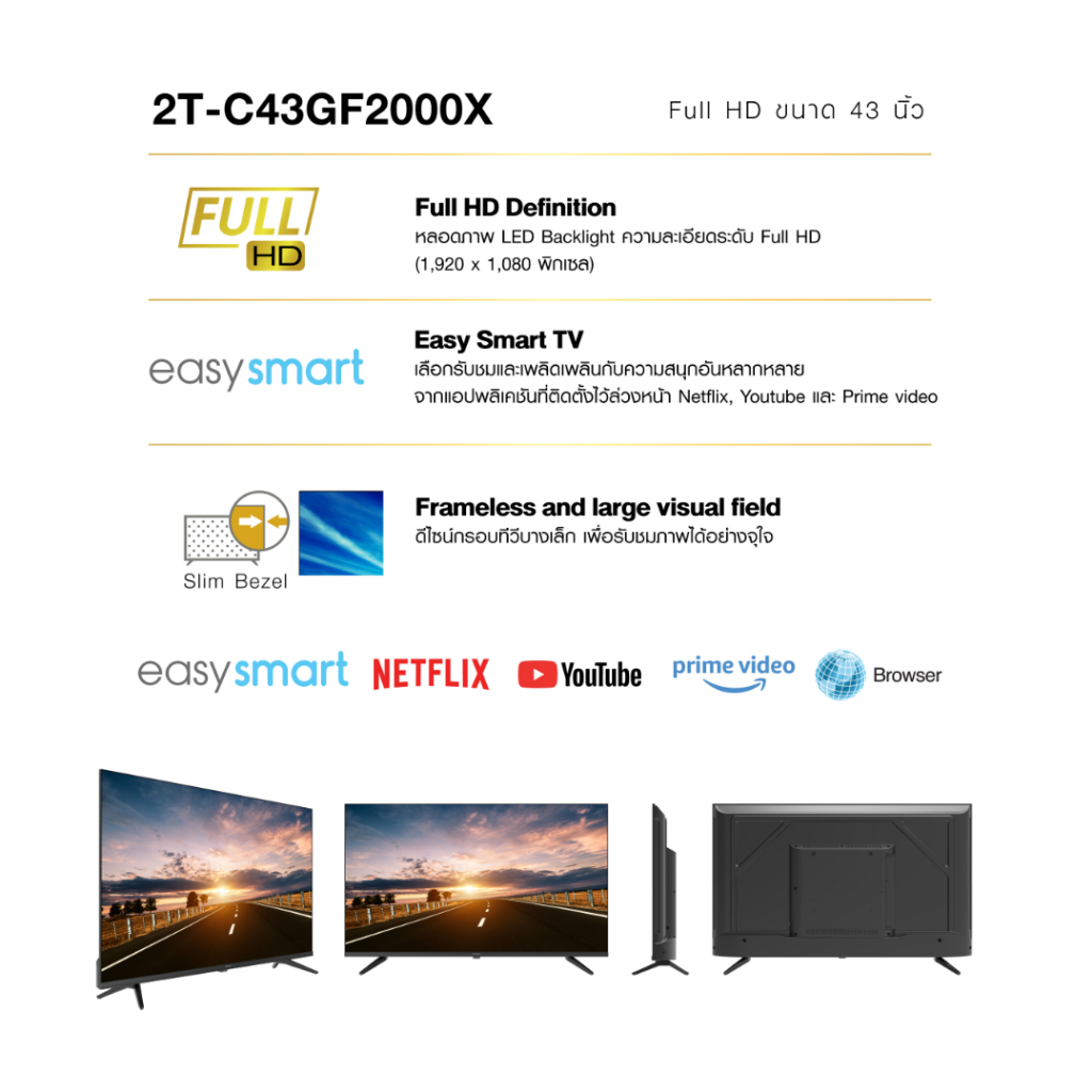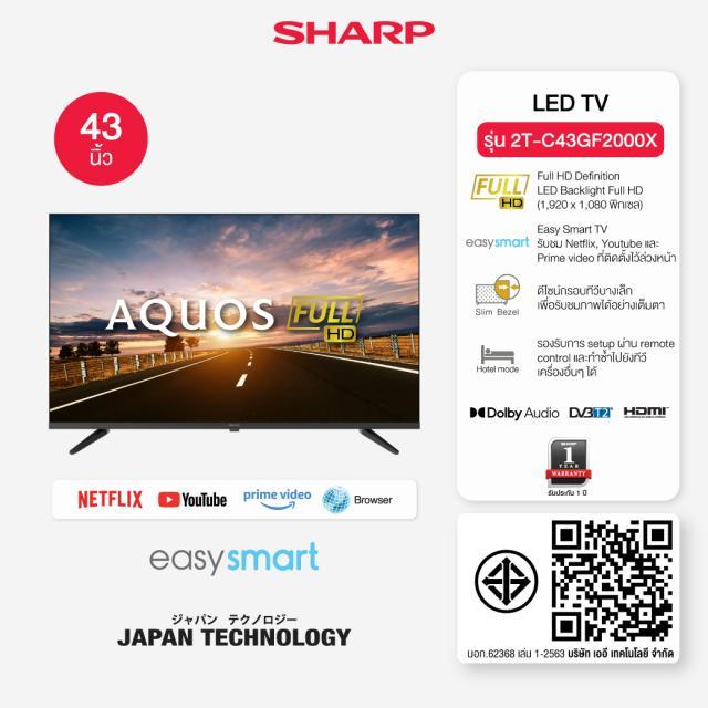 SHARP SMART TV สมาร์ททีวี ขนาด 43 นิ้ว รุ่น 2T-C43GF2000X ชาร์ป