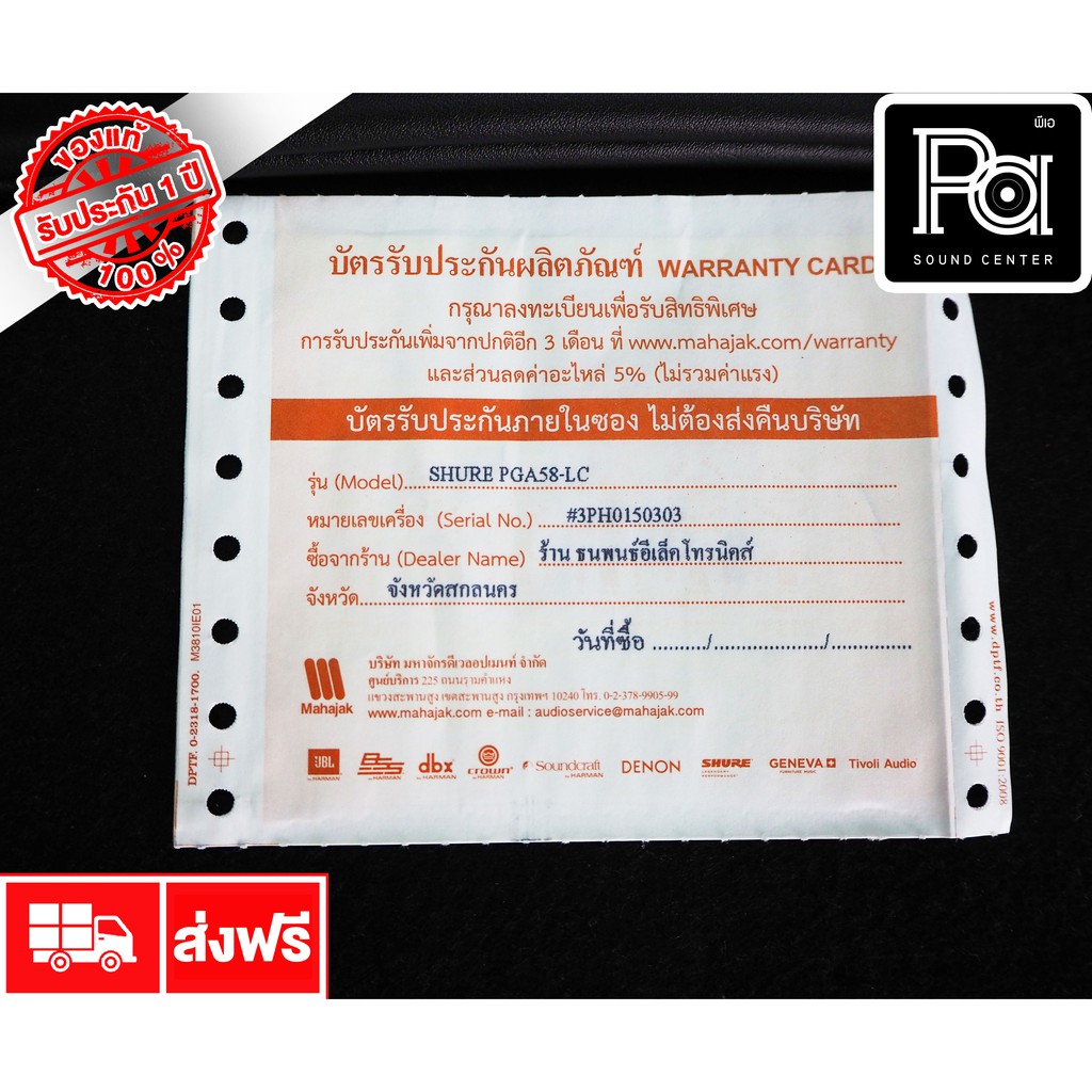 SHURE PGA58 LC Dynamic Microphone PGA 58 LC ไมค์สาย ไมโครโฟน PGA-58 ของแท้ มหาจักร PA SOUND CENTER