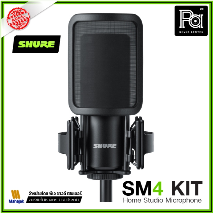SHURE SM4 KIT ไมค์สําหรับบันทึกเสียงแบบโฮมสตูดิโอ พร้อมอุปกรณ์เสริมในชุด แคปซูล Condenser แบบไดอะแฟรมคู่