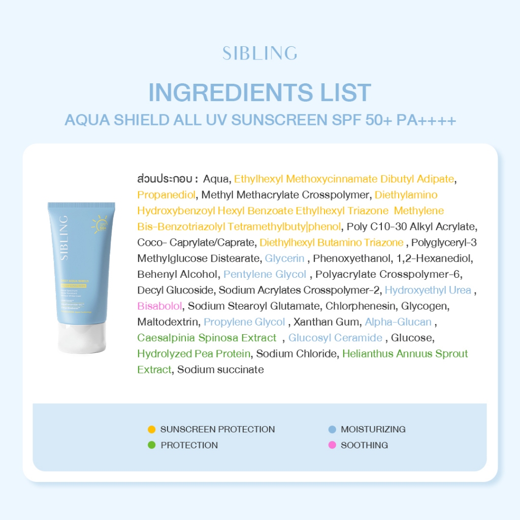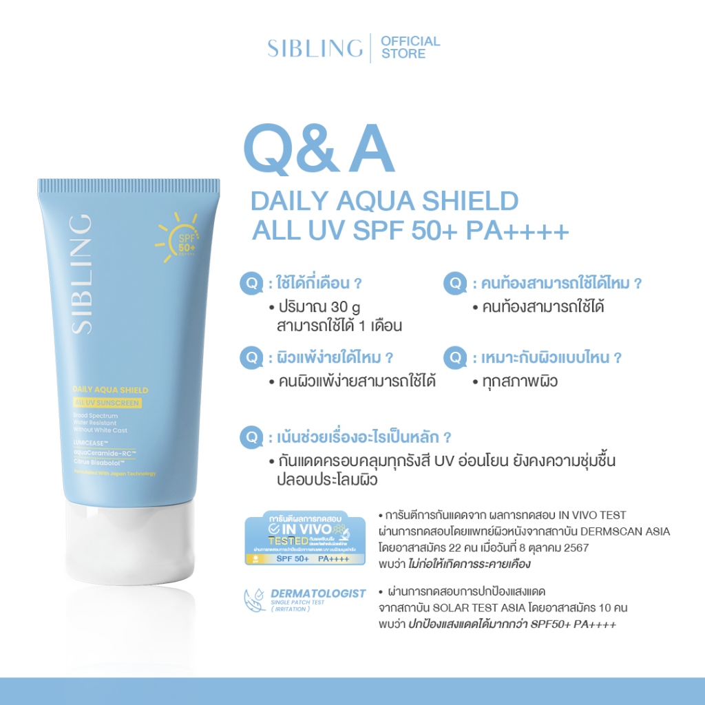 SIBLING Daily Aqua Shield All UV Sunscreen SPF50+ PA++++ (30g.) | กันแดดซิบบลิ้ง
