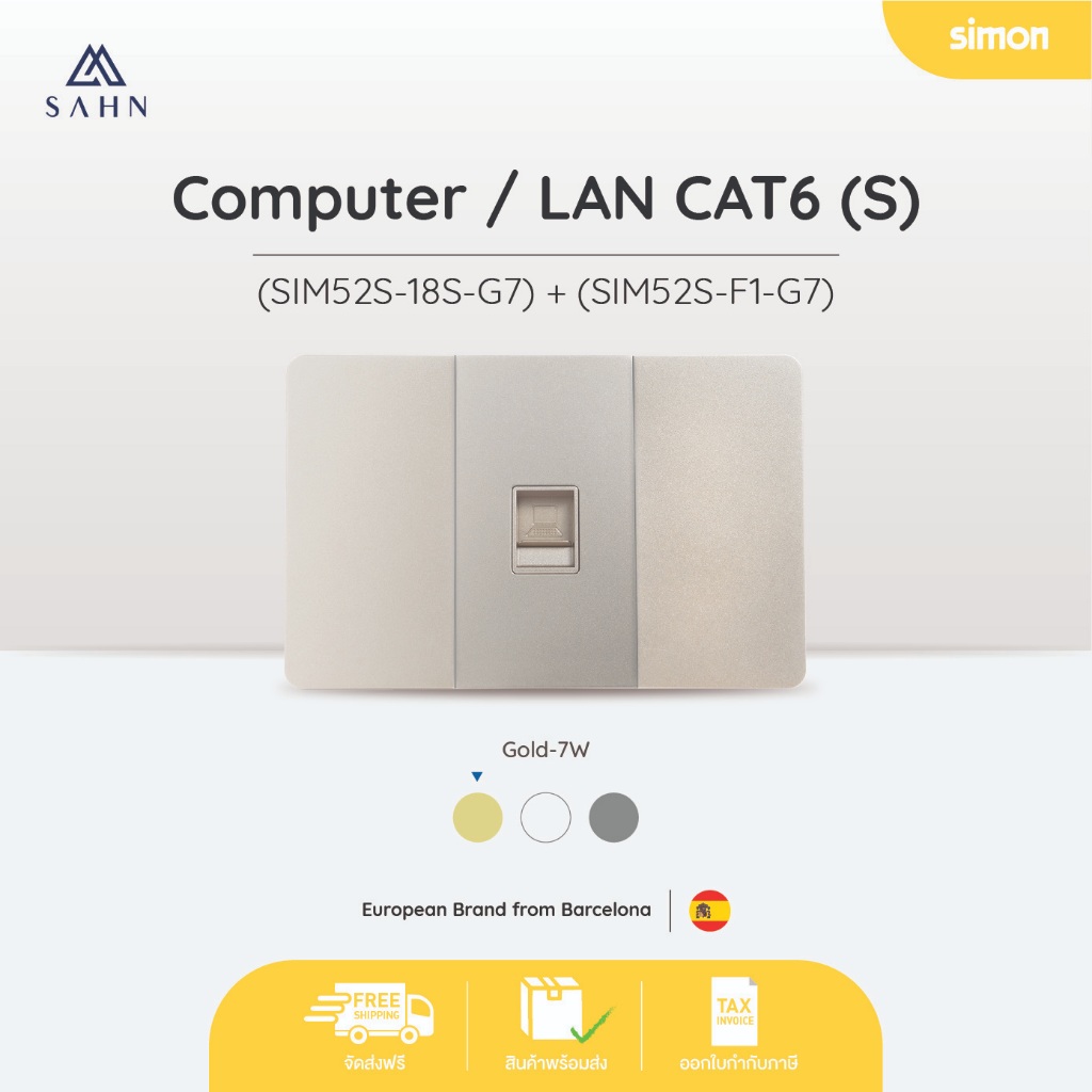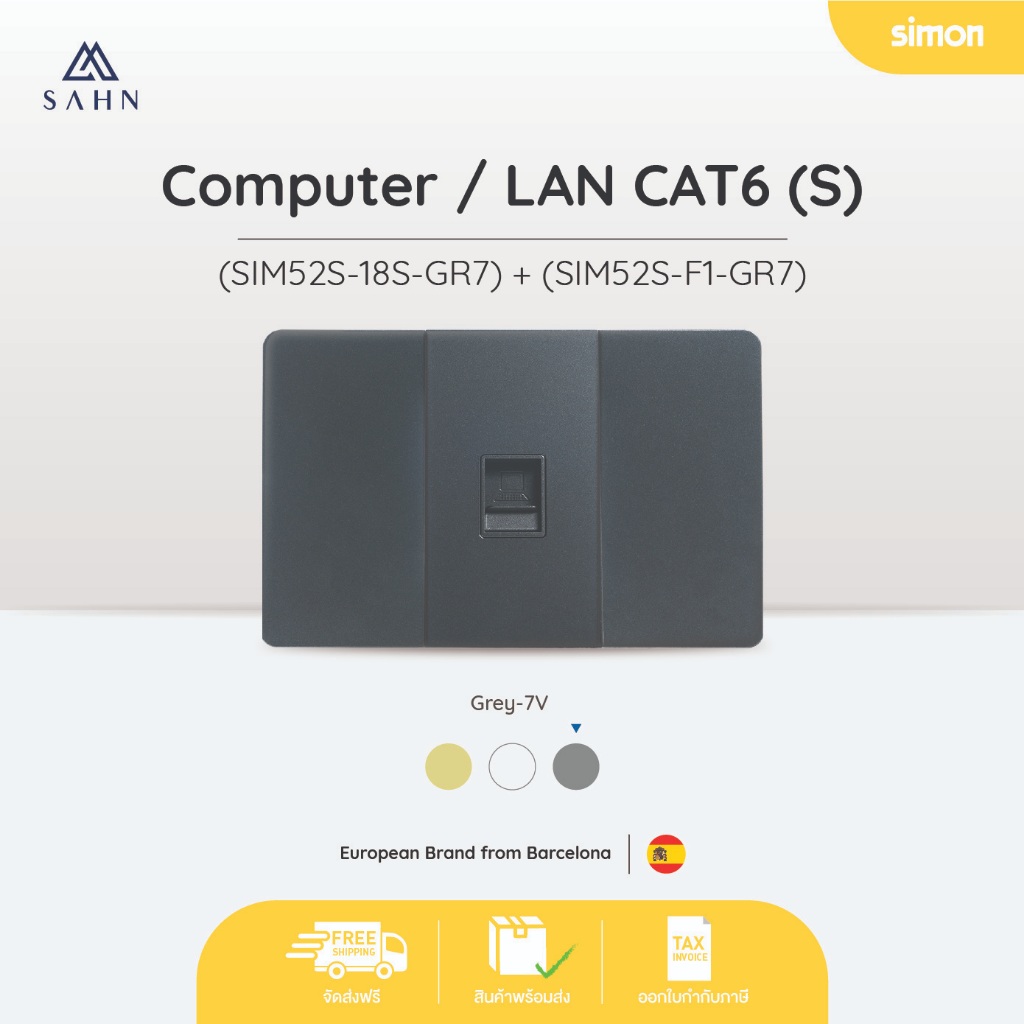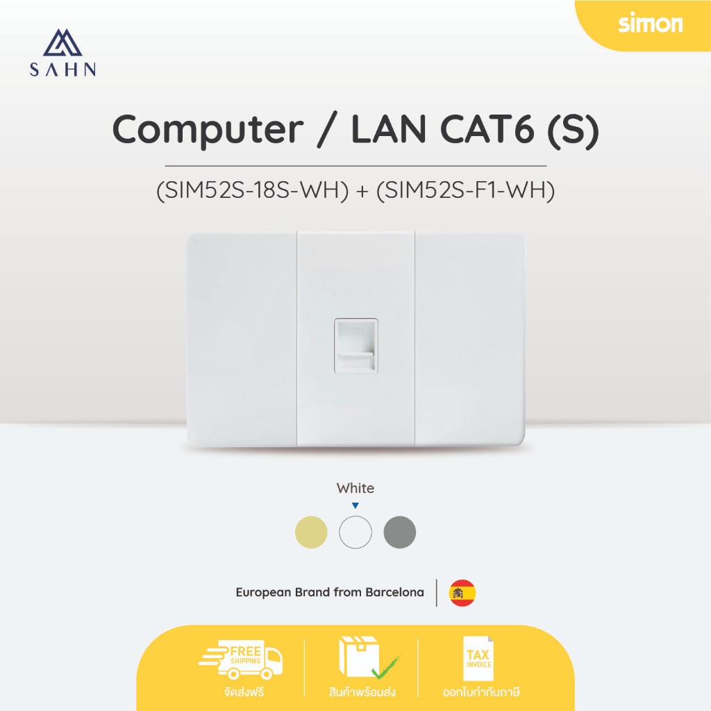 SIMON 52S ปลั๊กเต้ารับสัญญาณอินเตอร์เน็ต/Lan พร้อมหน้ากากขนาด 2*4 นิ้ว (SIM52S-18S)