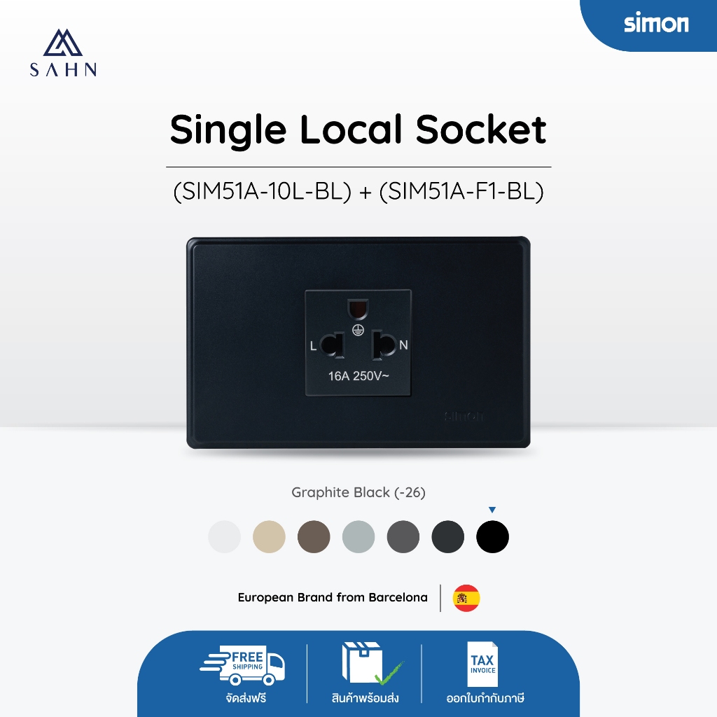 SIMON51A เต้ารับปลั๊กเดี่ยว พร้อมหน้ากากมาตรฐานขนาด 2*4 นิ้ว ดีไซน์เรียบสวย ทันสมัย