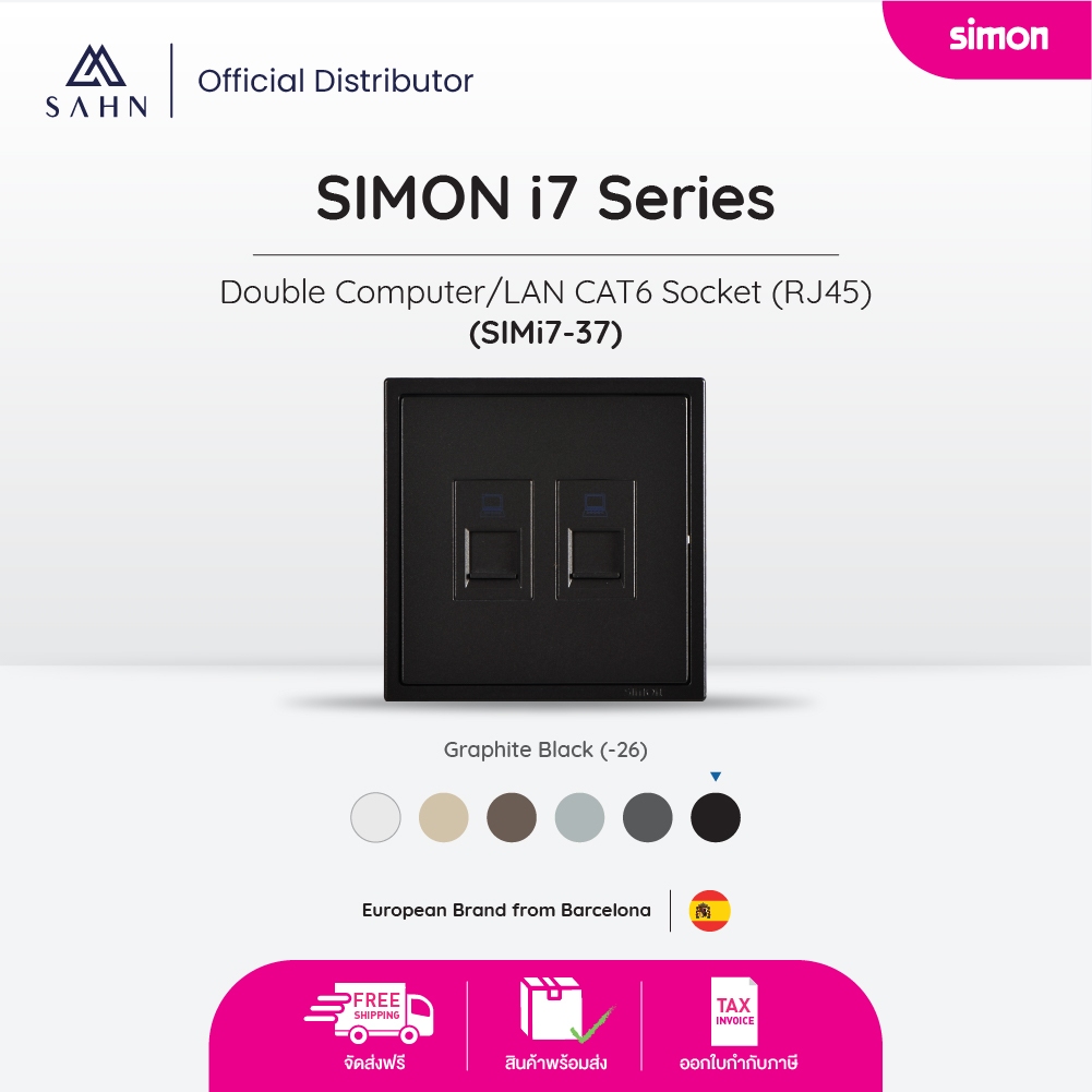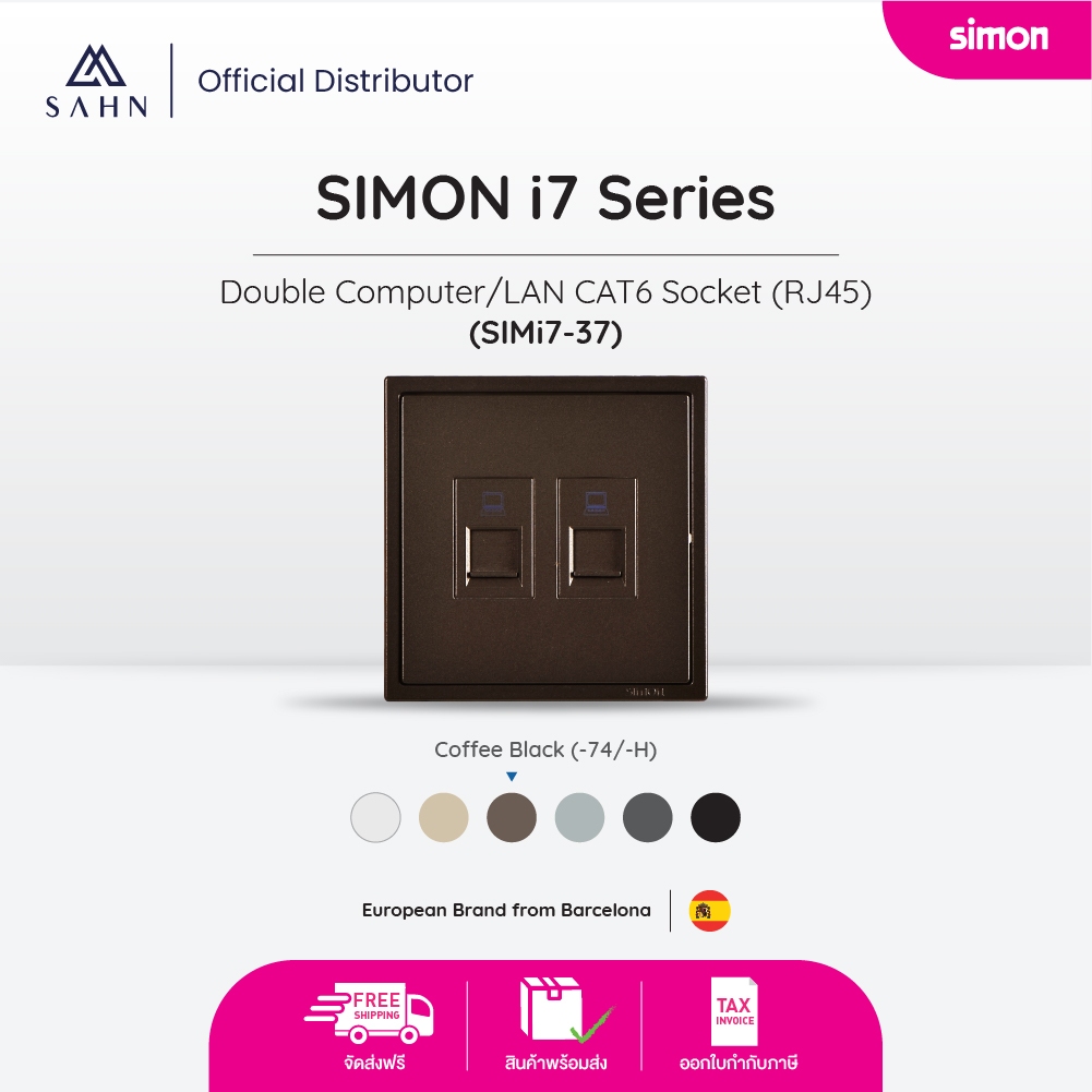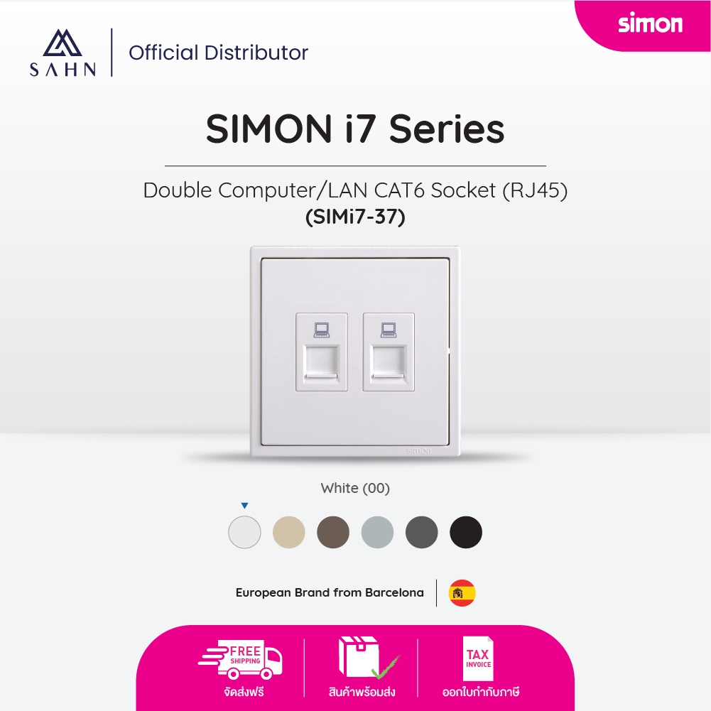 SIMONi7 Double Computer/LAN CAT6 Socket (RJ45) ชุดเต้ารับคอมพิวเตอร์/แลน 2 ช่อง พร้อมเฟรม (simi7-37)