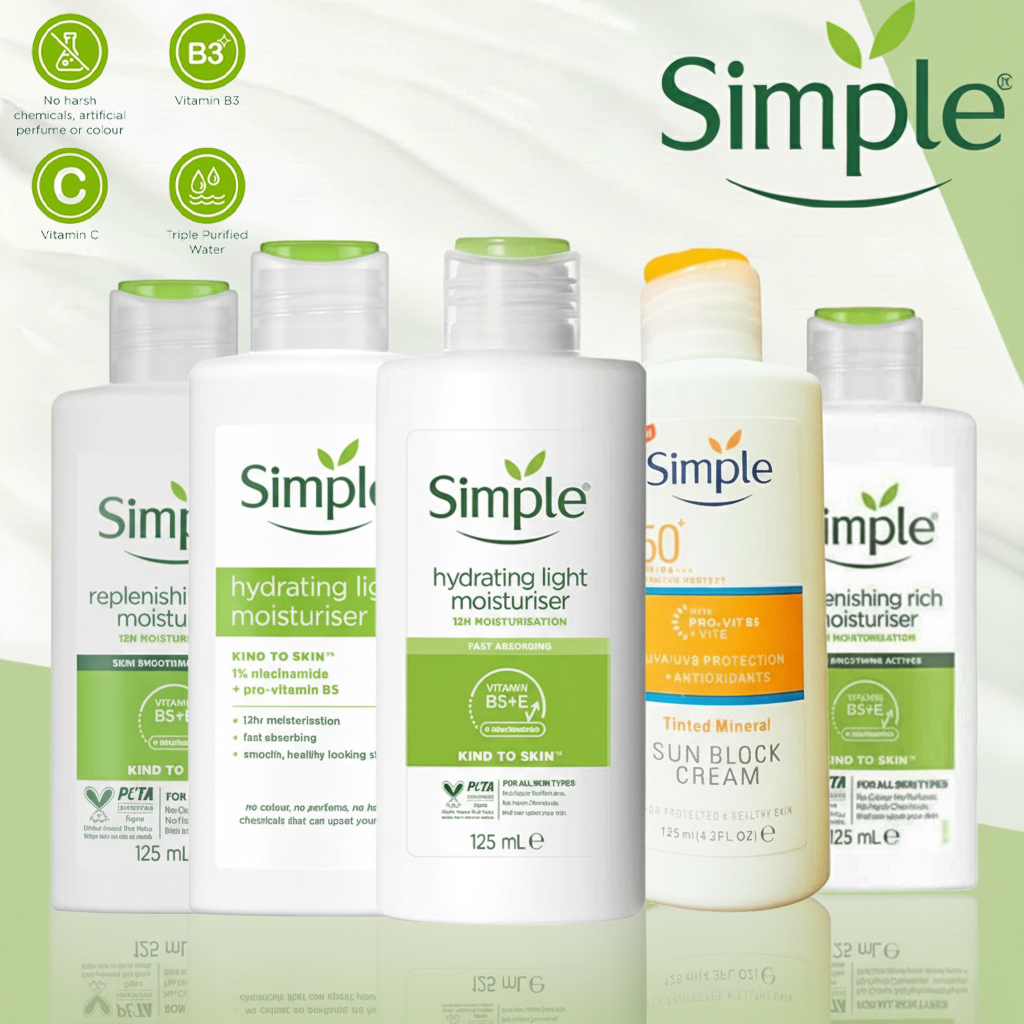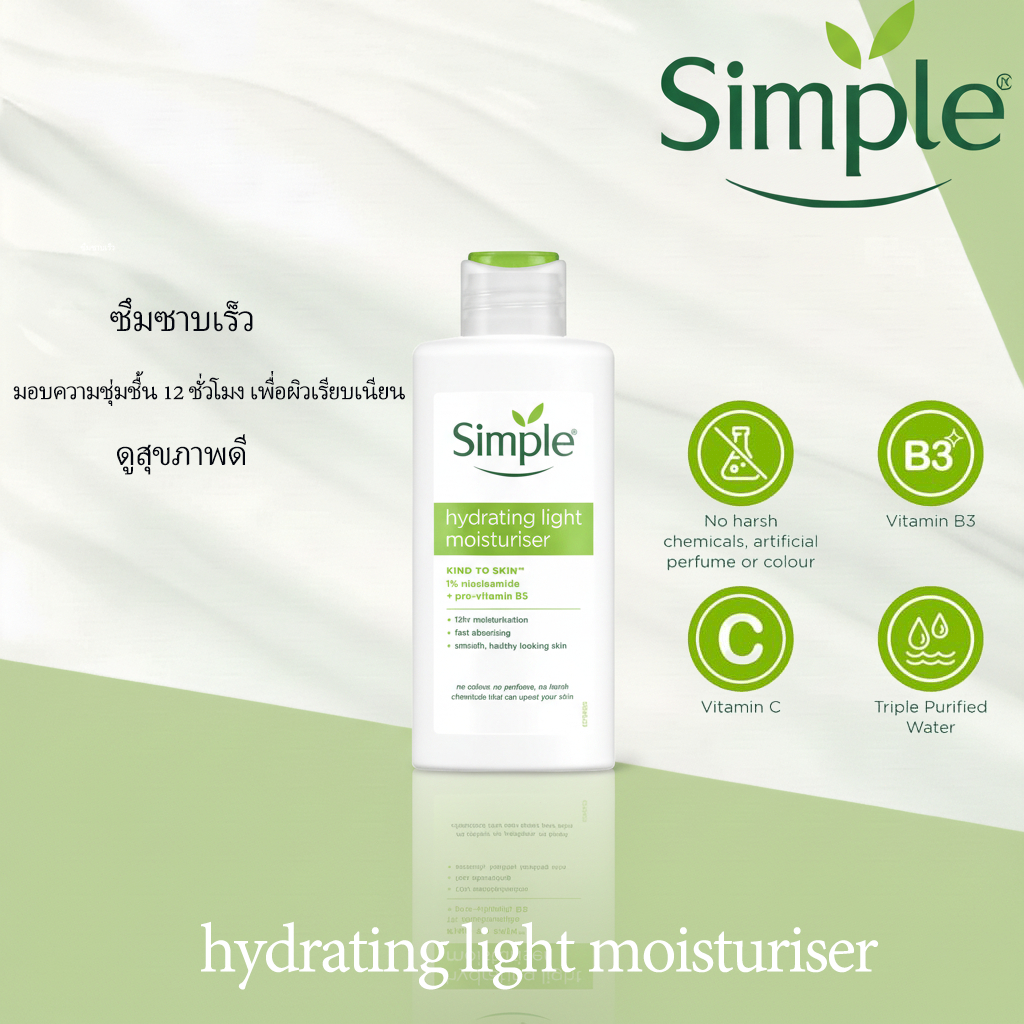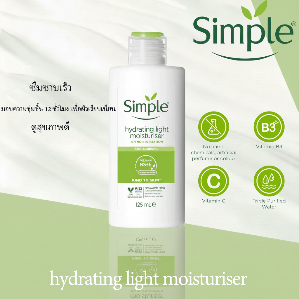 SIMPLE hydrating light moisturiser 125ml micellar, Refreshing Facial Wash Soothing Facial Tone ,sun block cream