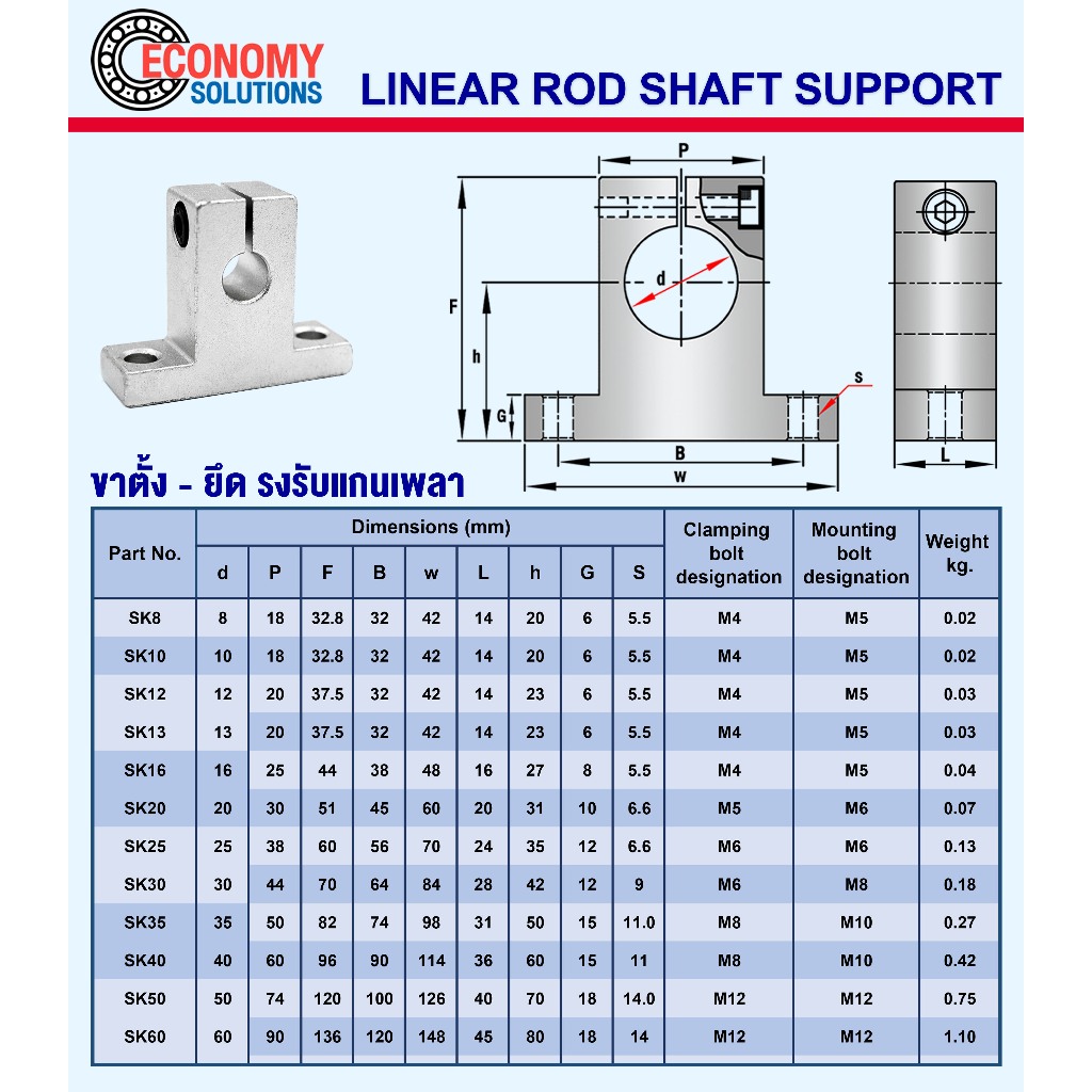 SK20 SK25 SK30 SK35 SK40 ขาตั้งเพลา ขายึดเพลา (SHAFT SUPPORT) ขารับแกนเพลา ตัวยึดเพลา