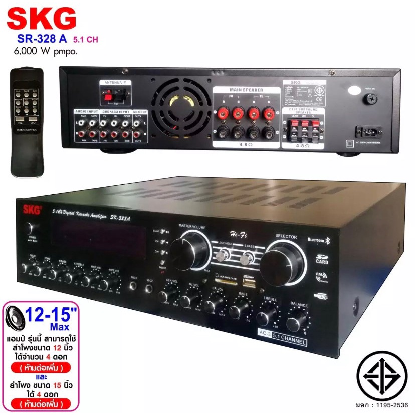 SKG รุ่น SR-328 Ampliffiler แอมป์ขยาย 6000 W PMPO (PRO audio)