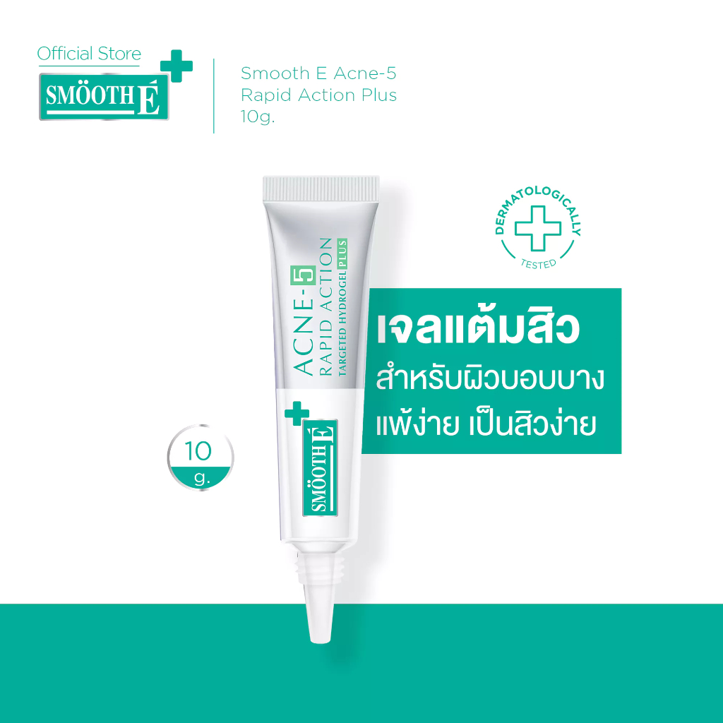 [ใหม่!] Smooth E Acne-5 Rapid Action Plus 10g. เจลแต้มสิว สำหรับผิวบอบบางแพ้ง่าย ปราศจากสเตียรอยด์ ไม่ทิ้งรอยดำ รอยแดง