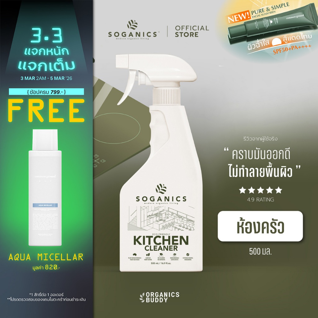 SOGANICS Kitchen Cleaner สเปย์ทำความสะอาดห้องครัว ขจัดคราบมัน เช็ดโต็ะอาหาร เตาไฟฟ้า ไมโครเวฟ 500ml