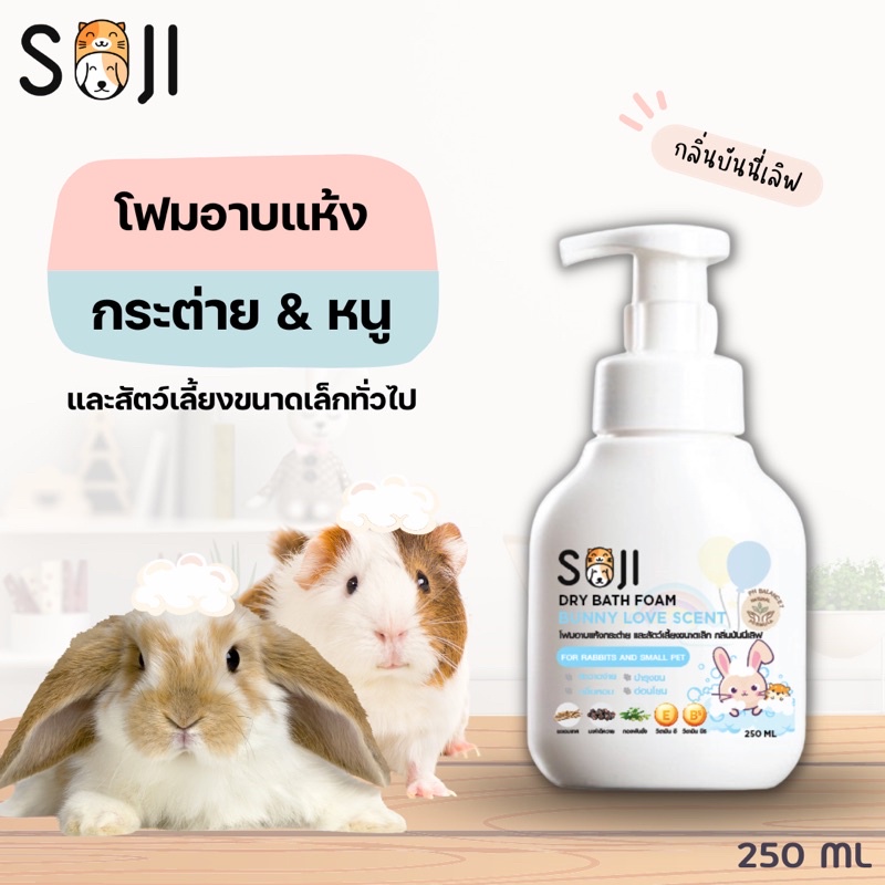 SOJI โฟมอาบน้ำแห้ง กระต่าย 250ml แชมพูอาบแห้งสัตว์เล็ก หนูแกลบี้ ชินชิล่า กระรอก เม่นแคระ