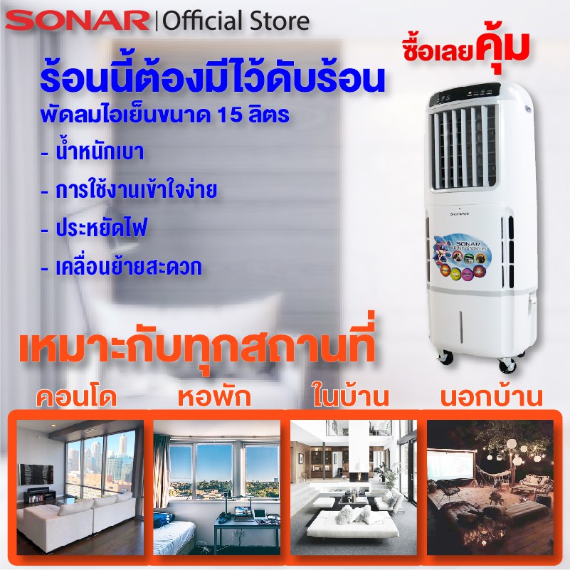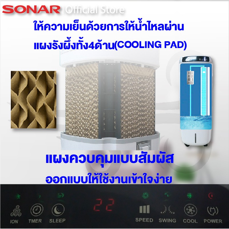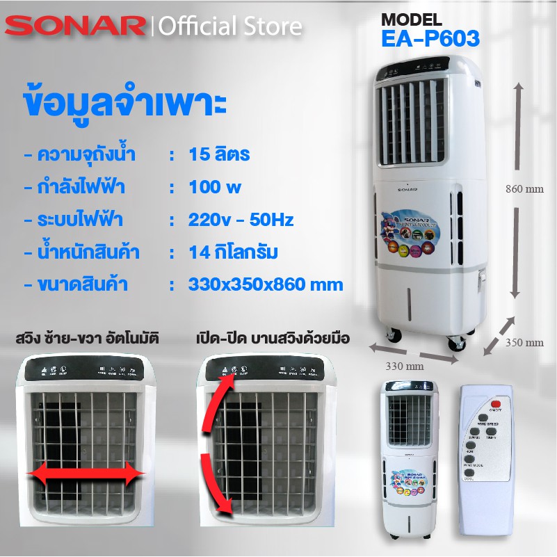 SONAR พัดลมไอเย็น 15 ลิตร เติมน้ำ ทำงานเงียบ มีล้อในตัว รุ่น EA-P603
