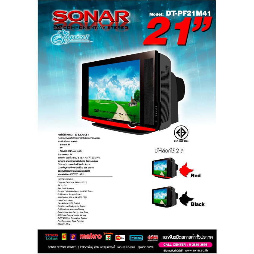 SONAR CRT TV 21" Crystal Design รุ่น DT-PF21M41 - สีดำ เสียบปุ๊บดูทีวีได้ทันที