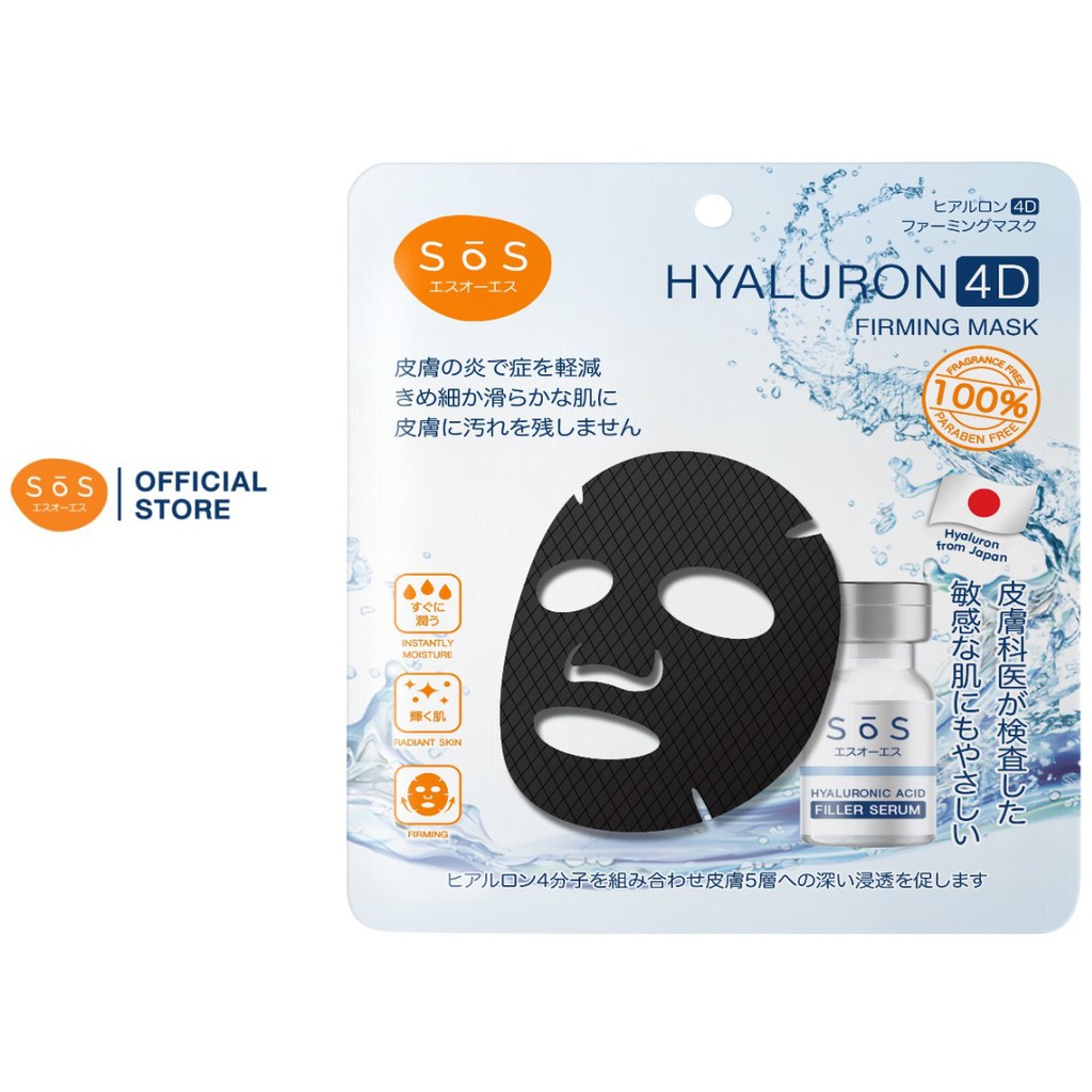 SOS Hyaluron 4D Firming Mask มาสก์ไฮยาลูรอน 4 โมเลกุล แผ่นมาสก์ไร้เส้นทอแนบสนิทไปกับผิว เติมน้ำให้ผิวชุ่มชื้นล้ำลึก 25ml