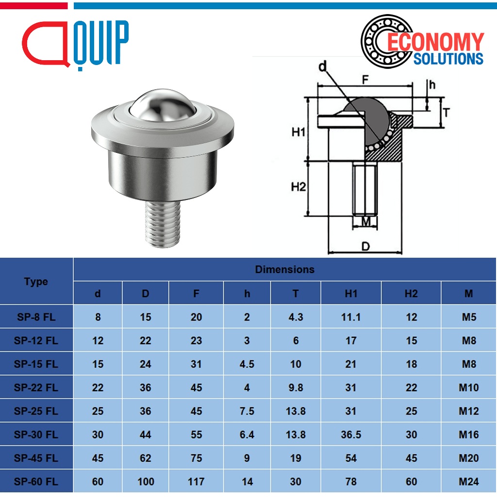 SP-25FL SP-30FL SP-45FL บอลลำเลียง Ball Transfer Units บอลลูกกลิ้งเหล็กสายพานลำเลียง