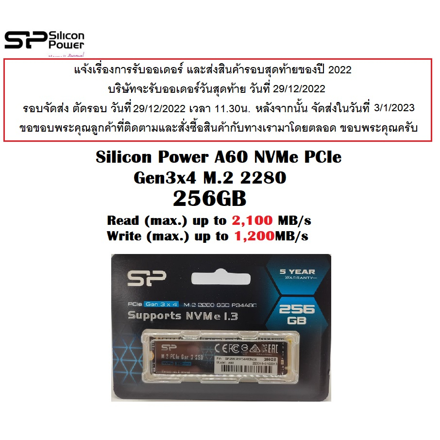 SSD SP A60 Super-fast NVMe PCIe Gen3x4 P34A60 256GB 512GB และ 1TB