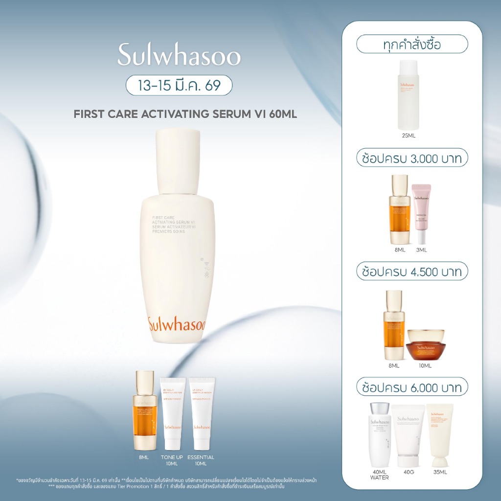 SULWHASOO First Care Activating Serum VI 60ml. โซลวาซู เซรั่มเกาหลี ลดเลือนริ้วรอยเพื่อผิวอ่อนเยาว์ ให้ผิวนุ่มชุ่มชื้น