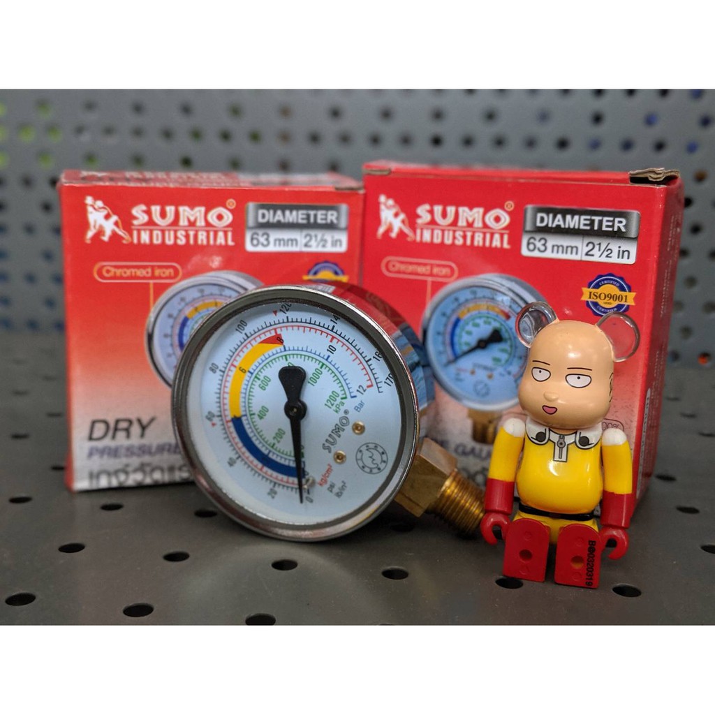 SUMO เกจ์วัดแรงดัน ทั้งลมและน้ำ เกจ์แบบแห้ง ออกล่าง(1/4") หน้าปัทม์ 2 1/2" (63มม.) 1-100 บาร์
