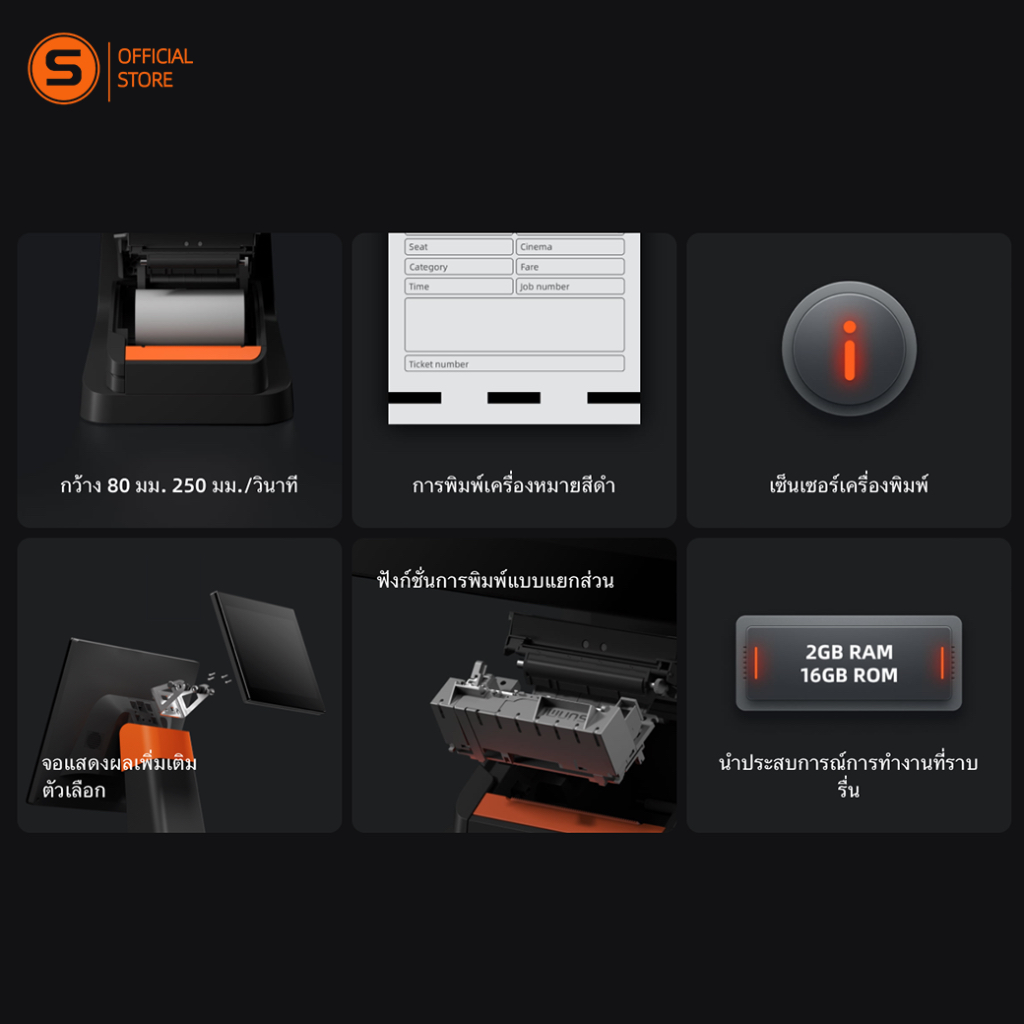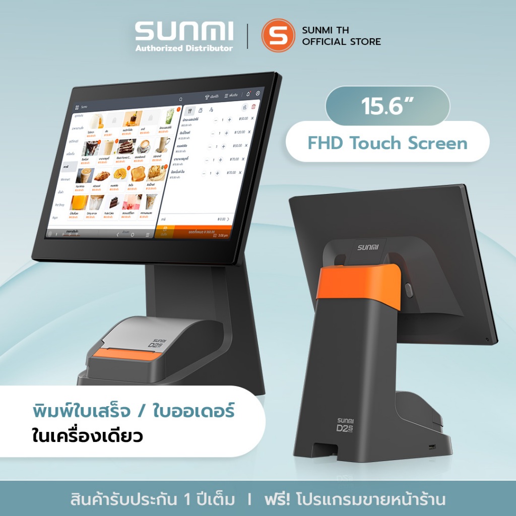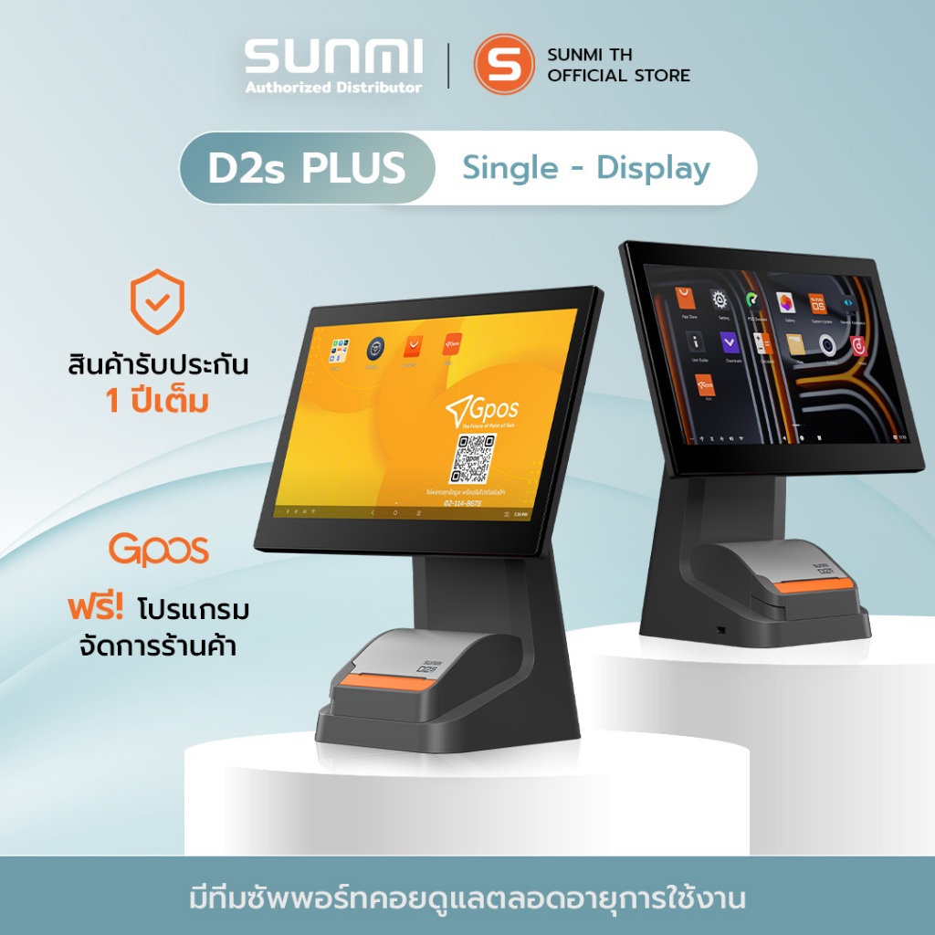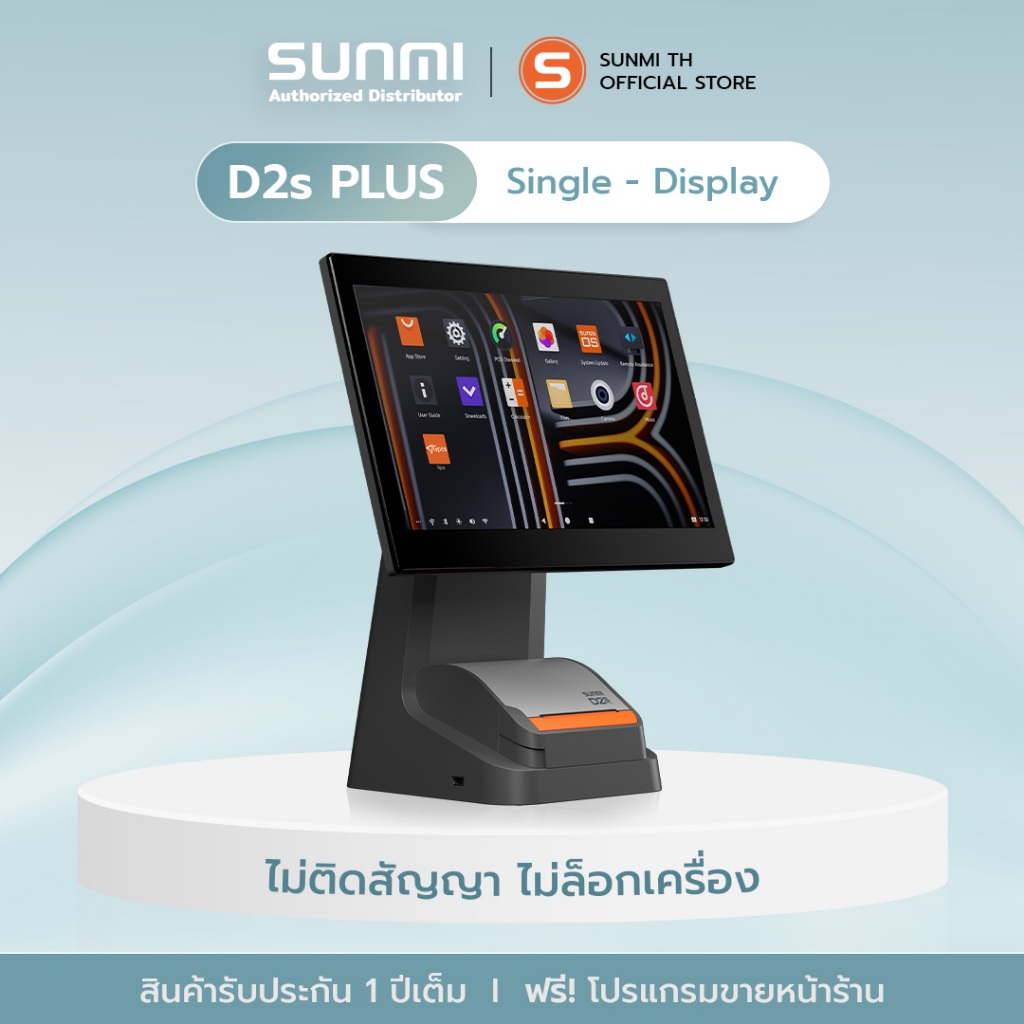 SUNMI D2splus Single เครื่องคิดเงิน พร้อมติดตั้งโปรแกรมขายหน้าร้านใช้งานฟรี
