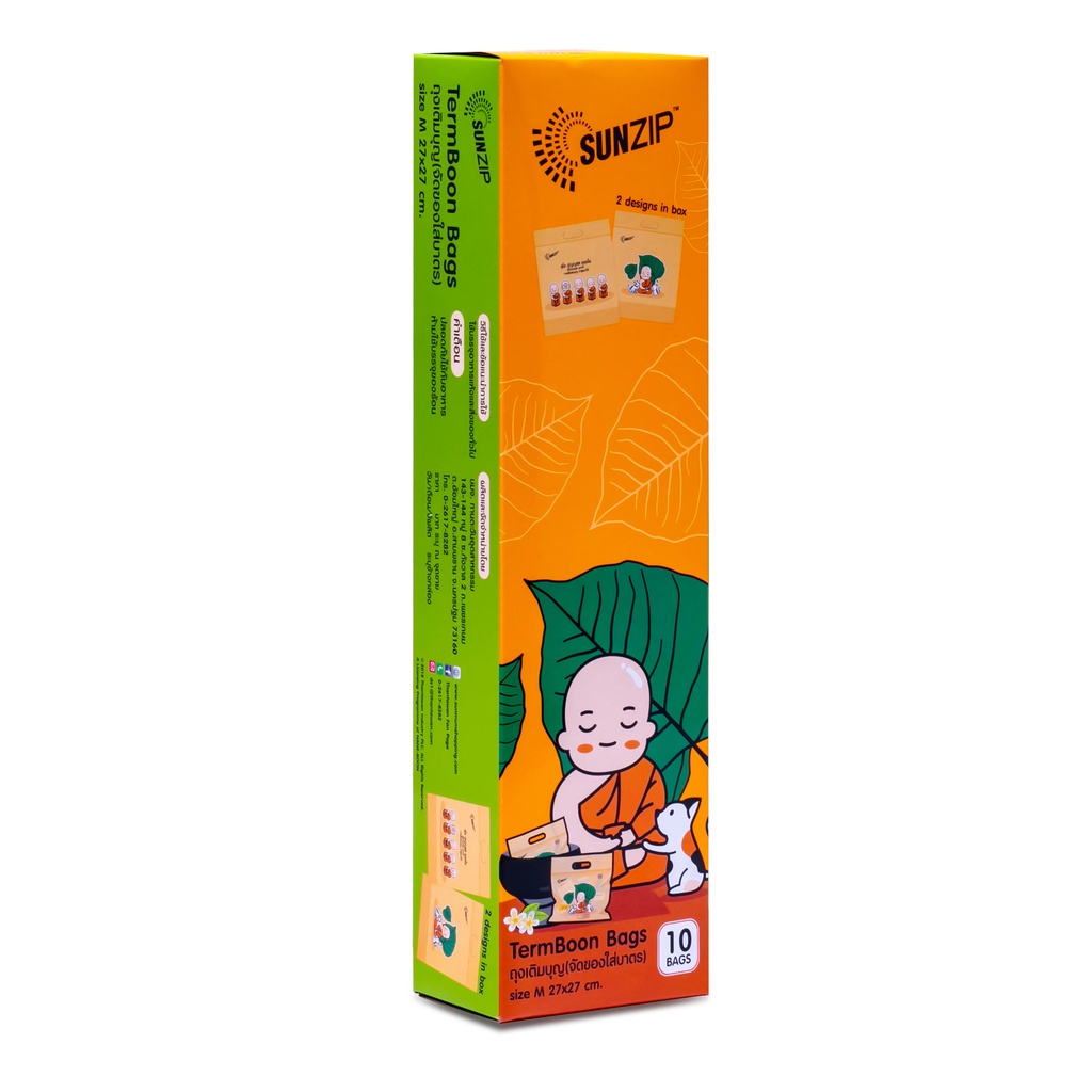 SUNZIP ถุงเติมบุญ ไซส์ M ขนาด 27 x 27 ซม. บรรจุ 10 ใบ/กล่อง ถุงทำบุญแบบซิป ไว้สำหรับจัดของใส่บาตร