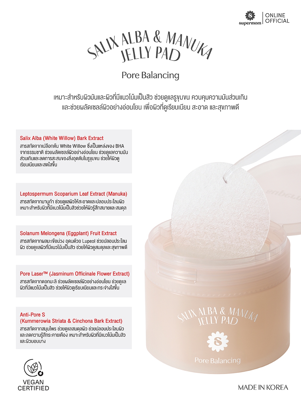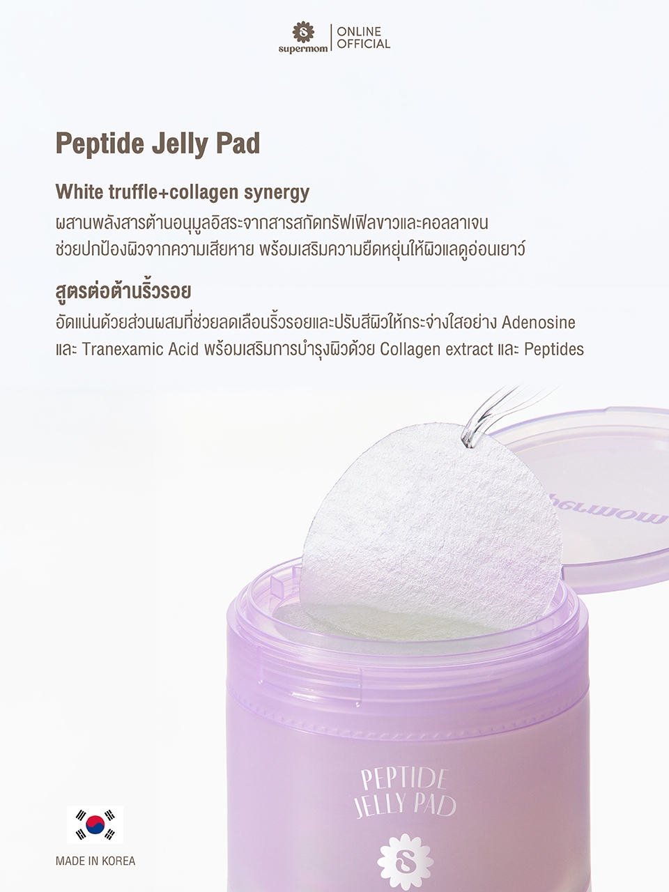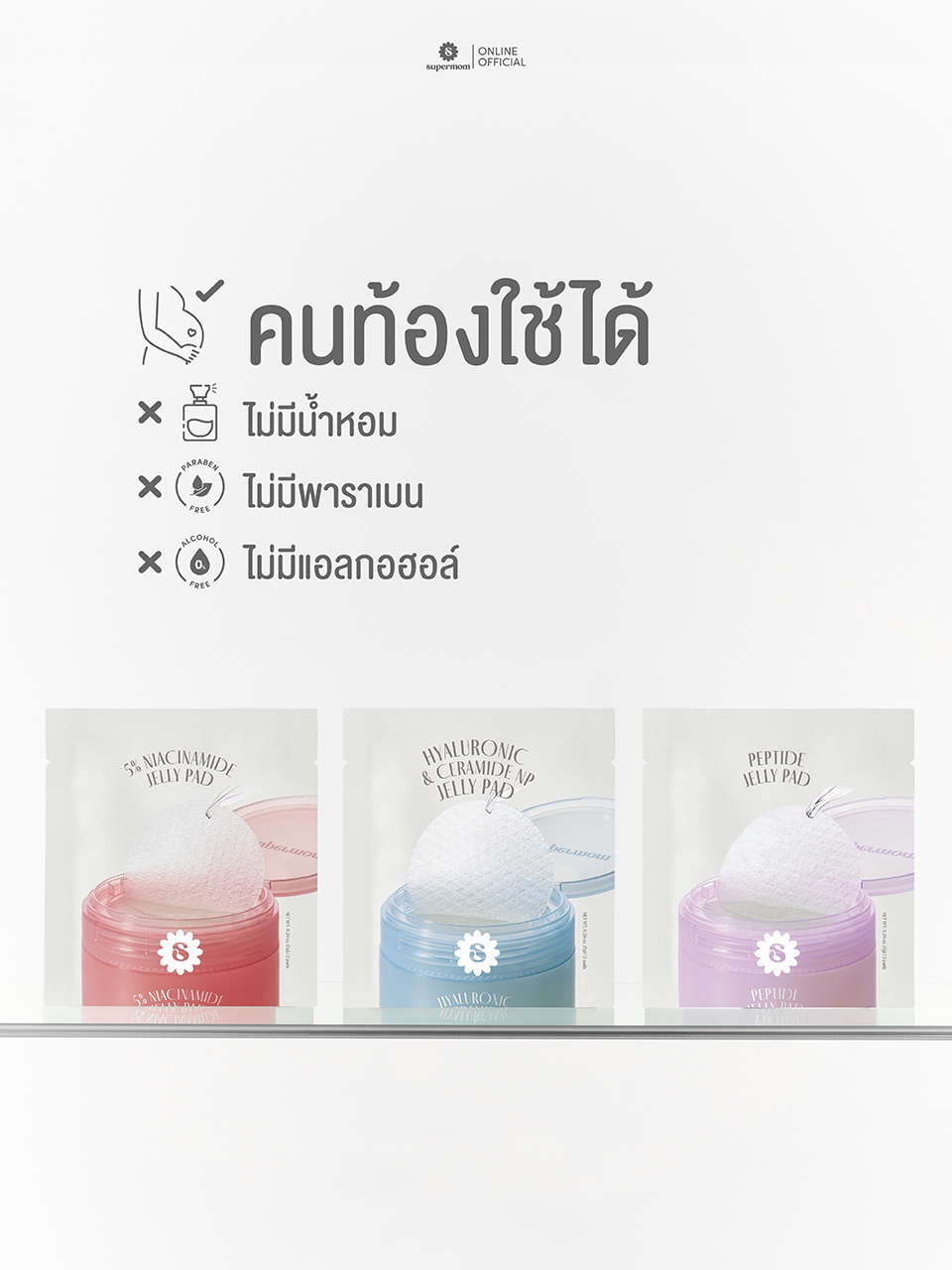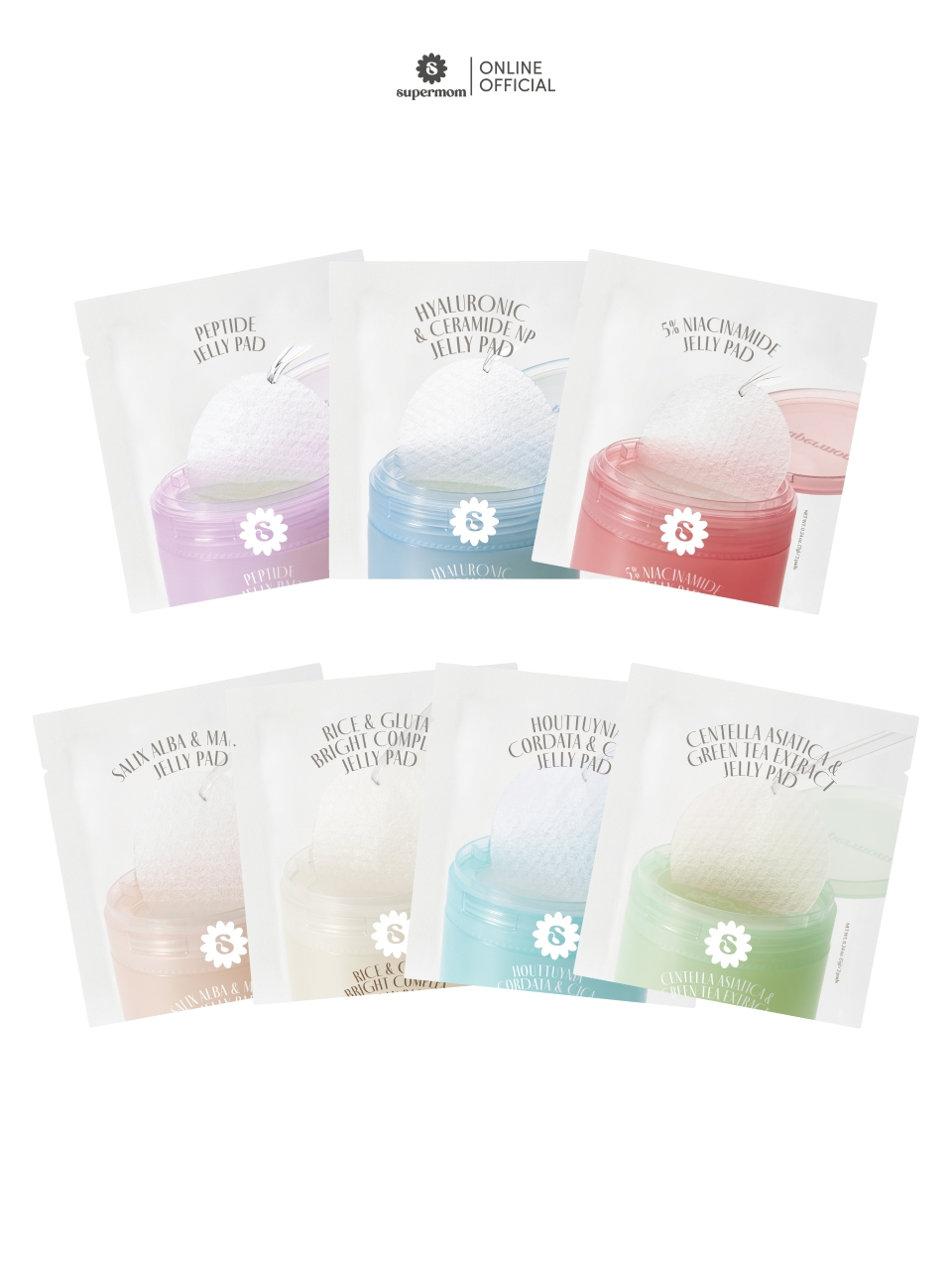SUPERMOM | JELLY PAD เจลลี่แพด แบบซองขนาดพกพา โทนเนอร์แพดและเป็นมินิมาร์คหน้าในตัวเดียวกัน Made in Korea 1ซองมี2แผ่น