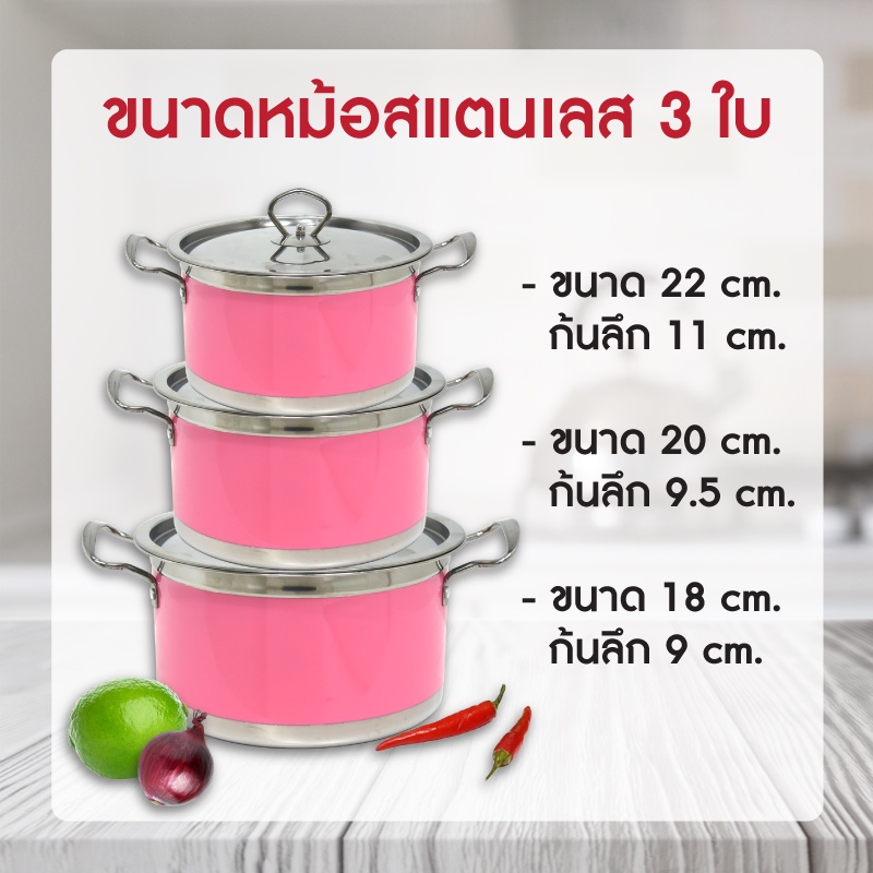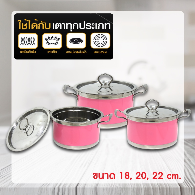 SWAN ชุดหม้อสแตนเลส 3 ใบขนาด 18, 20, 22 ซม. รุ่น G4021003 หม้อ หม้อสแตนเลส หม้อเครื่องครัว ชุดหม้อสแตนเลส