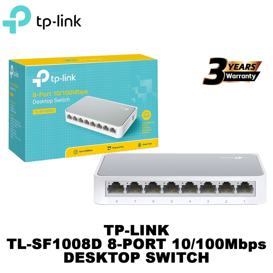 SWITCH HUB (สวิตซ์ฮับ) TP-LINK 8 PORTS (TL-SF1008D) FAST PORT 10/100 Mbps รับประกัน LT
