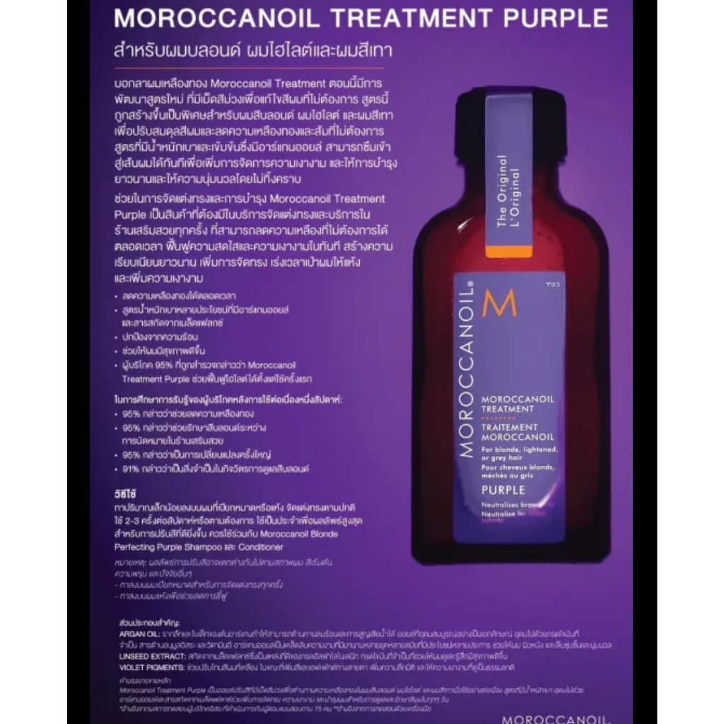 MOROCCANOIL BLONDE PURFECTING PURPLE SHAMPOO / CONDITIOER / TREATMENT โมรอคแคนออย เพอเพิล แชมพู แชมพูม่วง silver shampoo