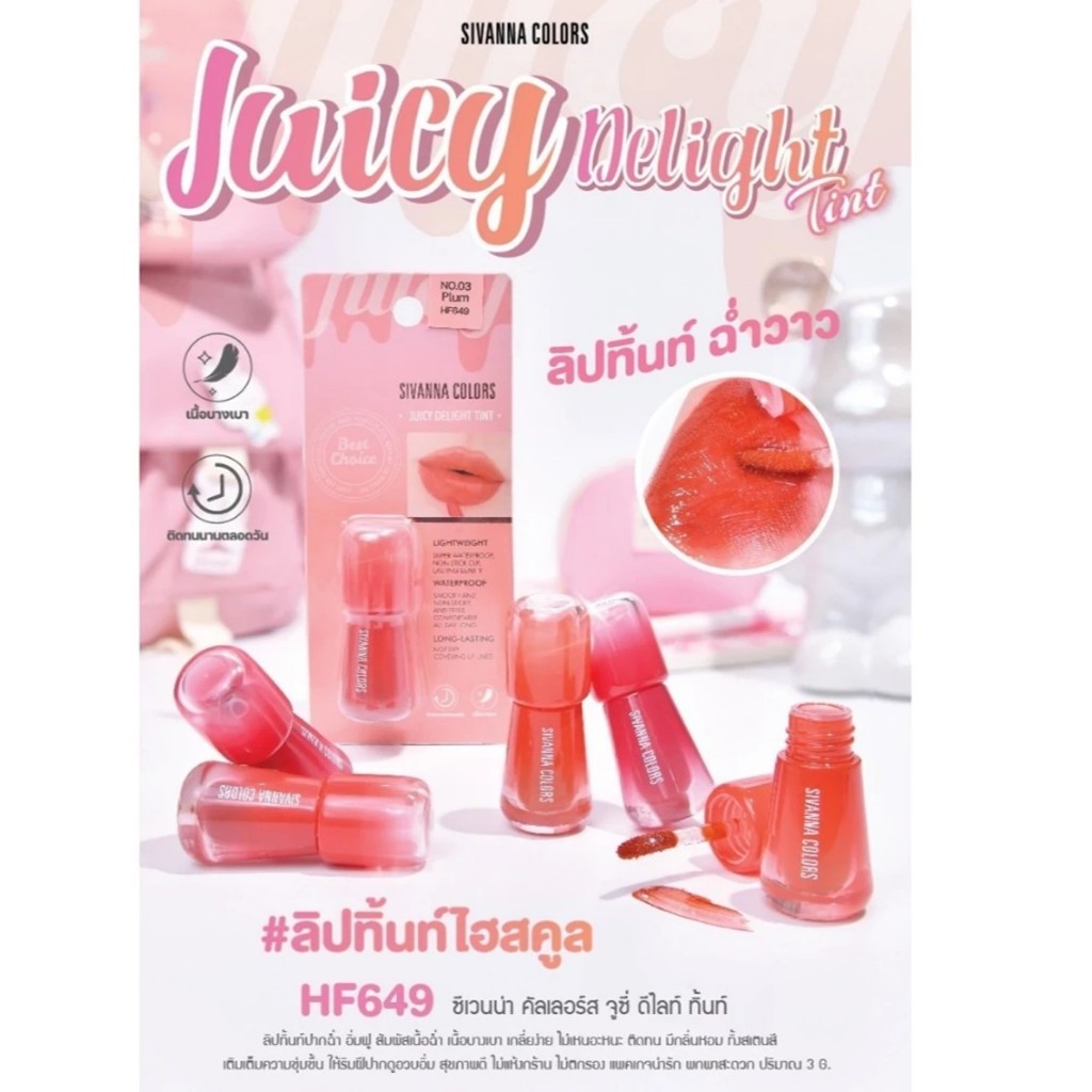 ซีเวนน่า จูซี่ ดีไลท์ ทิ้นท์ ลิปทิ้นท์ ฉ่ำวาว SIVANNA COLORS Juicy Welight Tint HF649 ขนาด 3 g.