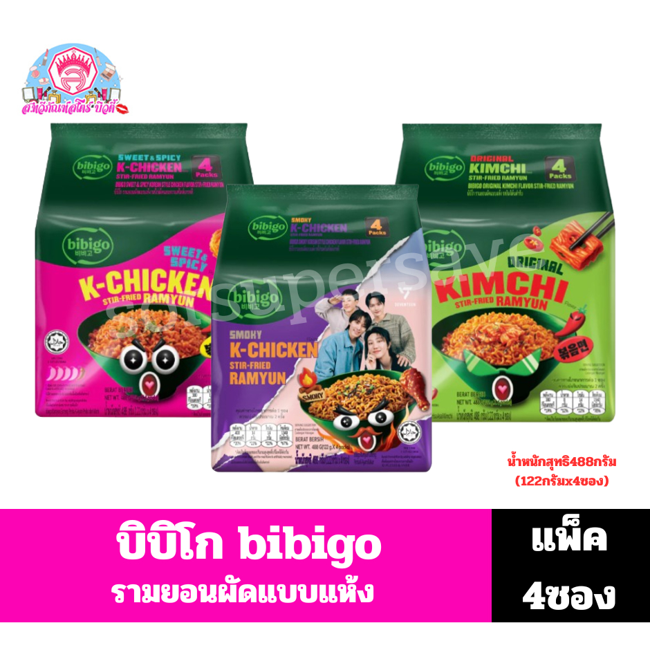 บิบิโก bibigo รามยอนผัดแบบแห้ง น้ำหนักสุทธิ488กรัม(122กรัมx4ซอง) //แพ็ค4ซอง//