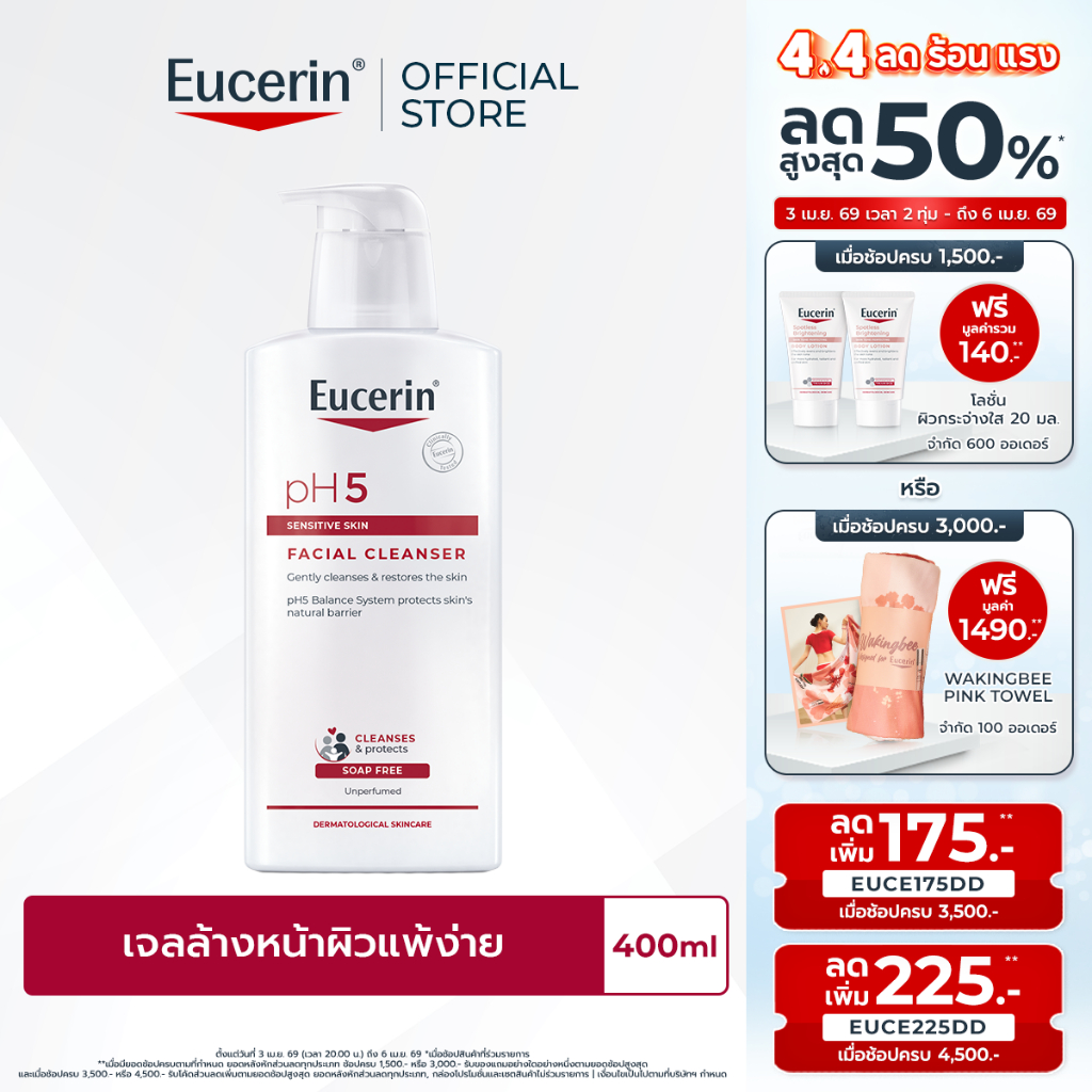 Eucerin pH5 SENSITIVE SKIN FACIAL CLEANSER 400 ML ยูเซอริน เจลล้างหน้าสูตรอ่อนโยน สำหรับผิวบอบบางแพ้ง่าย