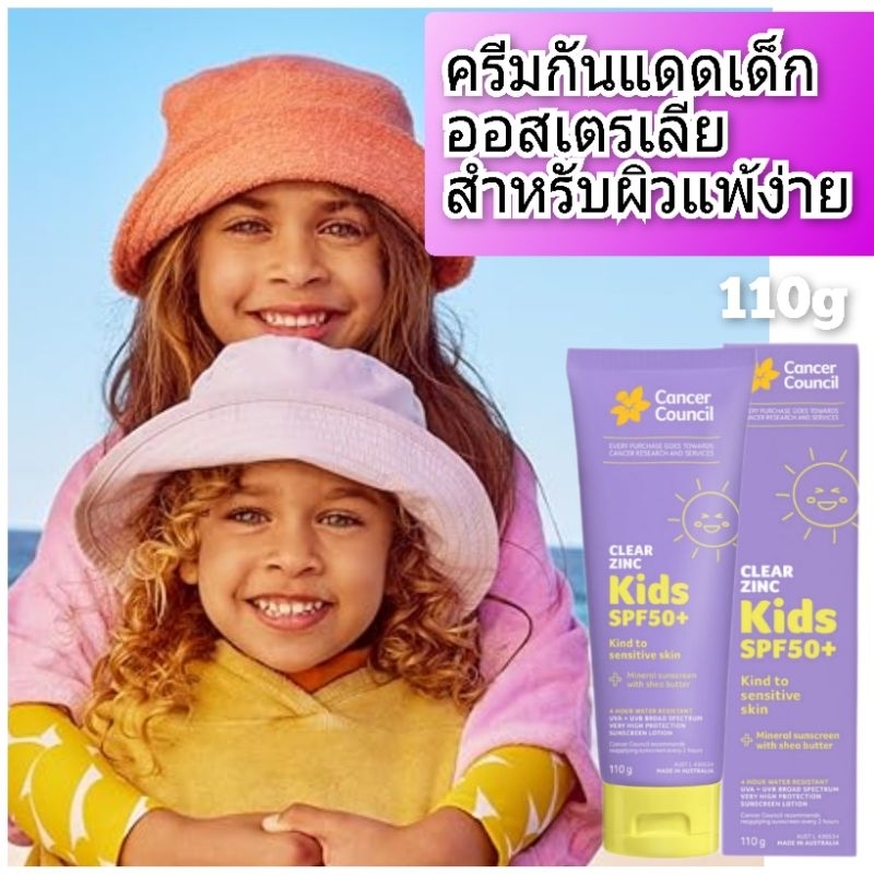 Cancer council clear zinc kids SPF50+ sunscreen ครีมกันแดดออสเตรเลีย สำหรับเด็ก sun block ซันบล็อก กันแดดเด็ก แพ้ง่าย