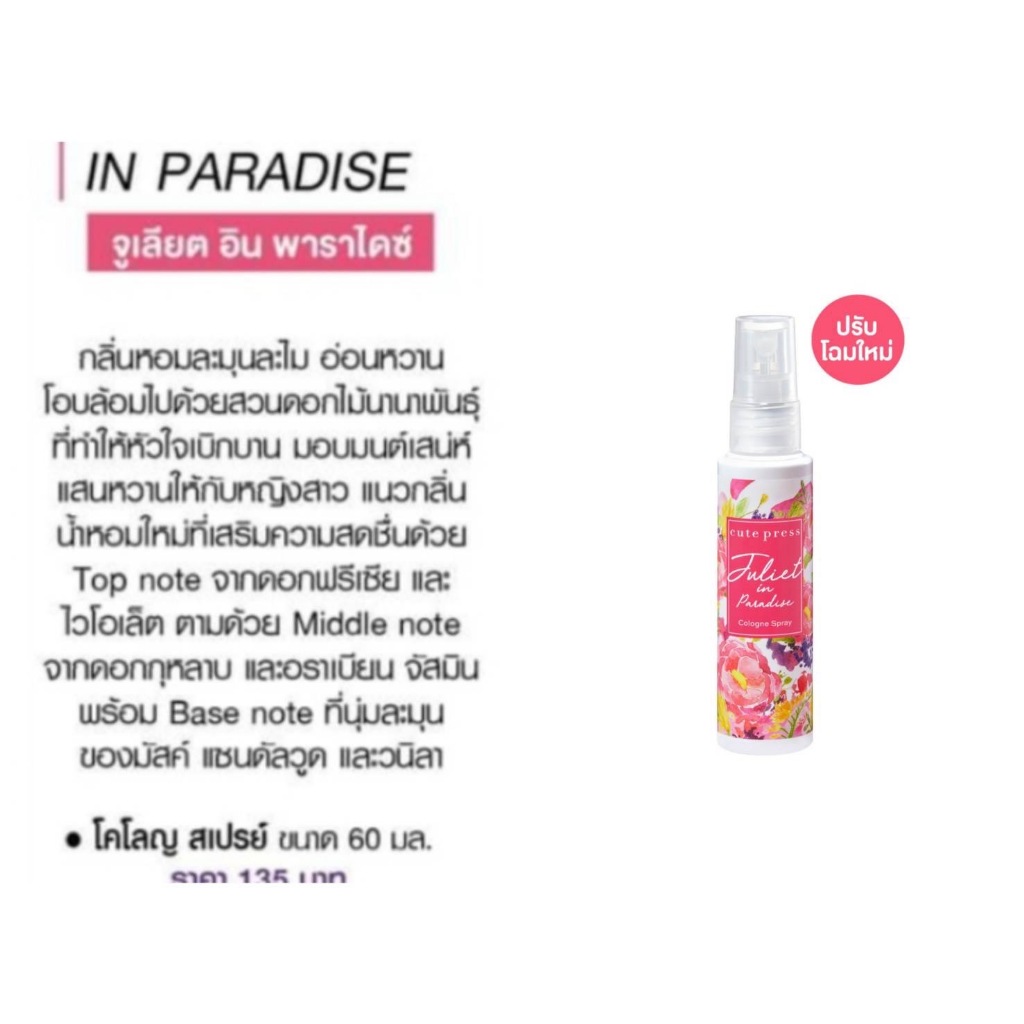 cute Press Cologne Spray น้ำหอม ญาญ่า คิวเพรส โคโลญ สเปรย์ ขนาด 60 มล ครบกลิ่น