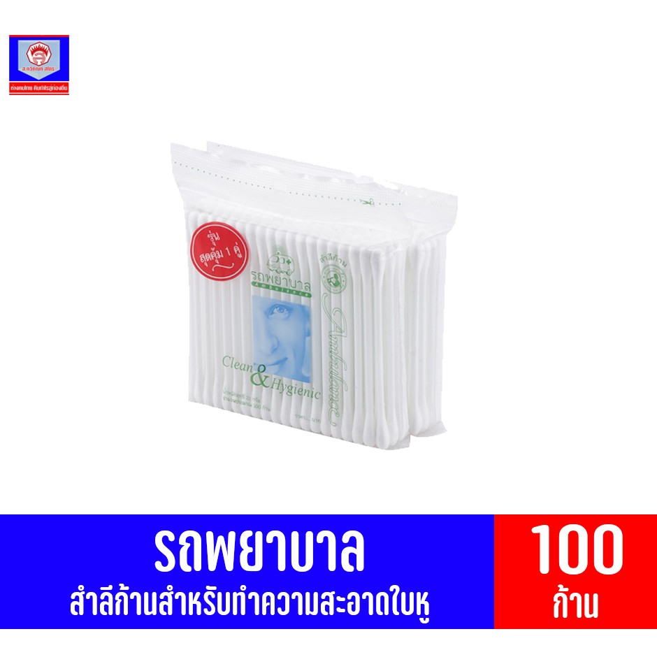 รถพยาบาล สำลีก้าน ทำความสะอาดหู แพ็คคู่ ขนาด 100 ก้าน