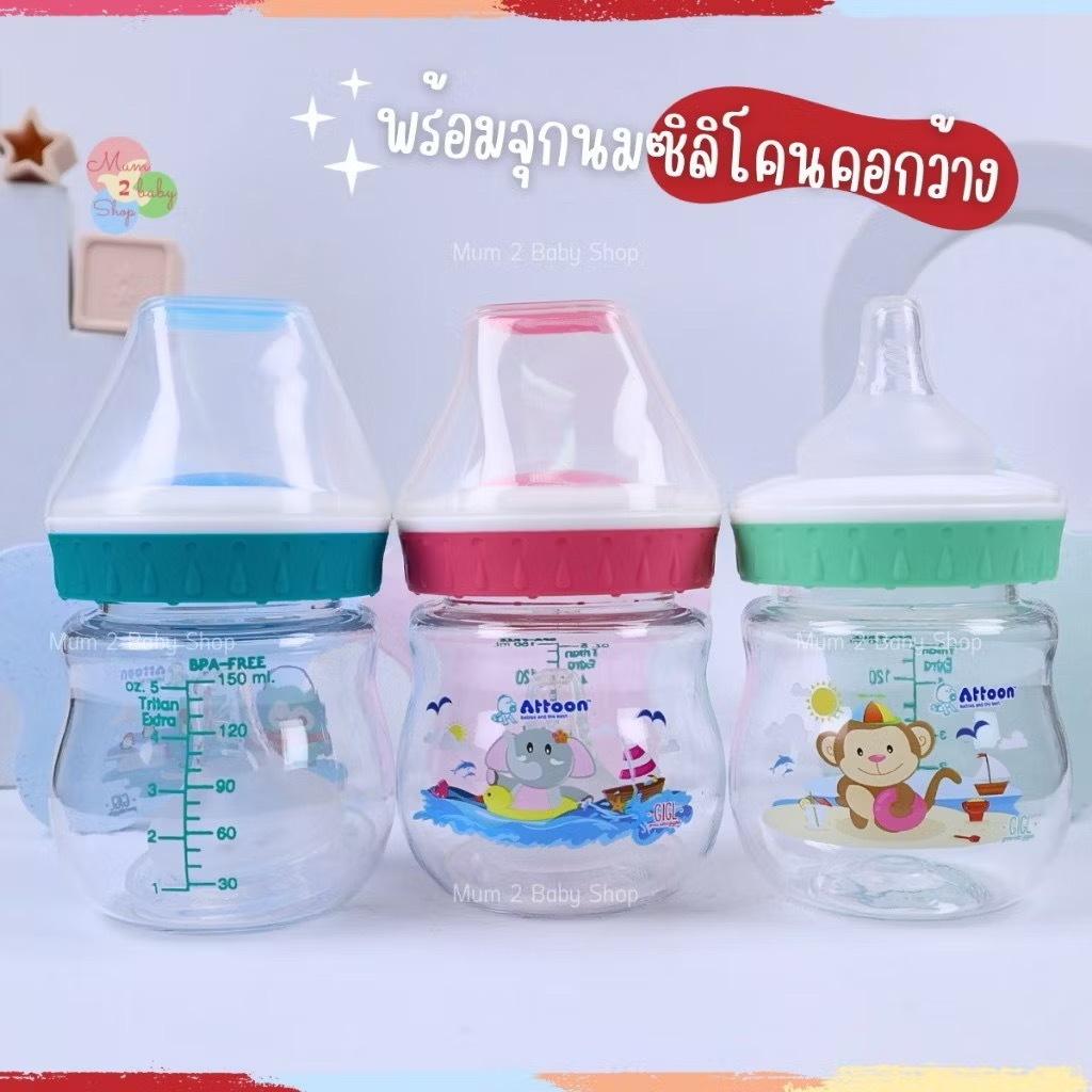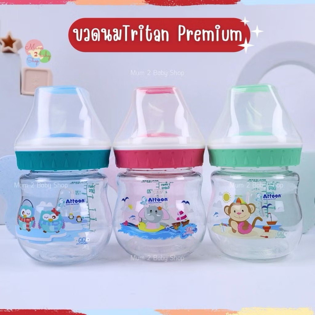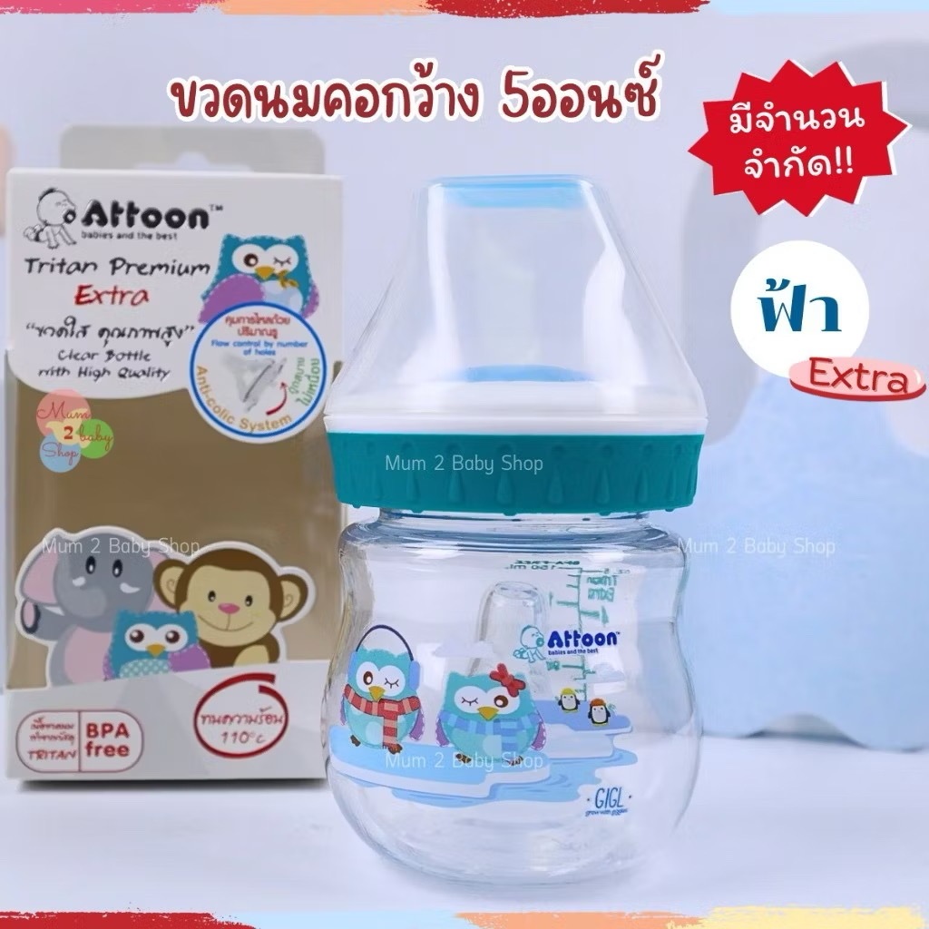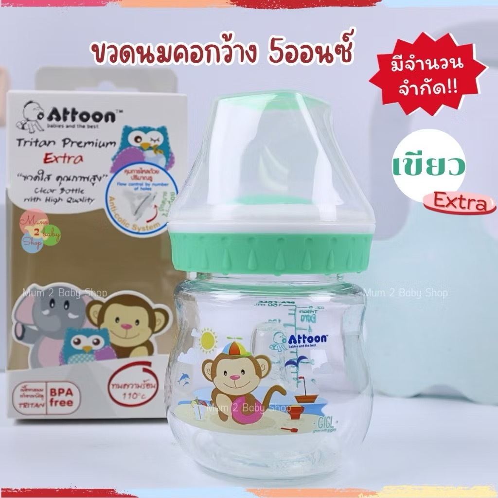 ราคาโล๊ะสต๊อคจากโรงงาน ขวดนมAttoon ขวดใสไทรทันพรีเมี่ยม Extra คอกว้าง 5oz. จุกนมไซส์S หมดแล้วหมดเลย