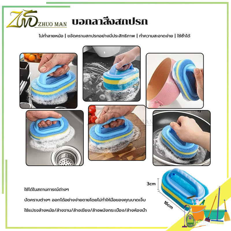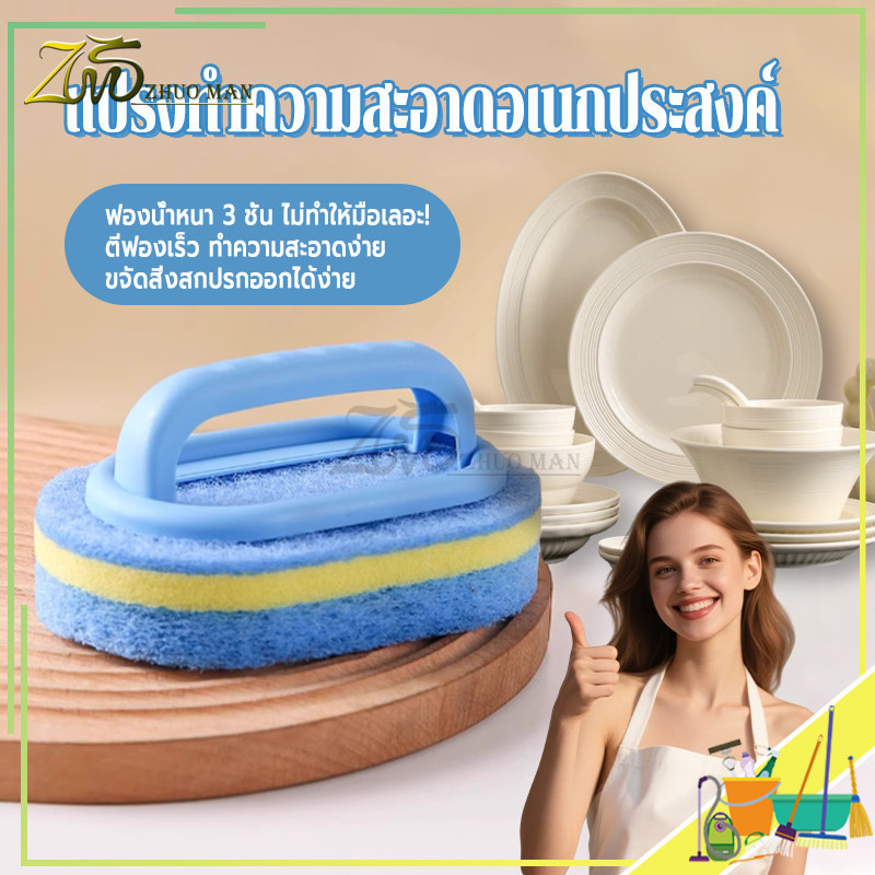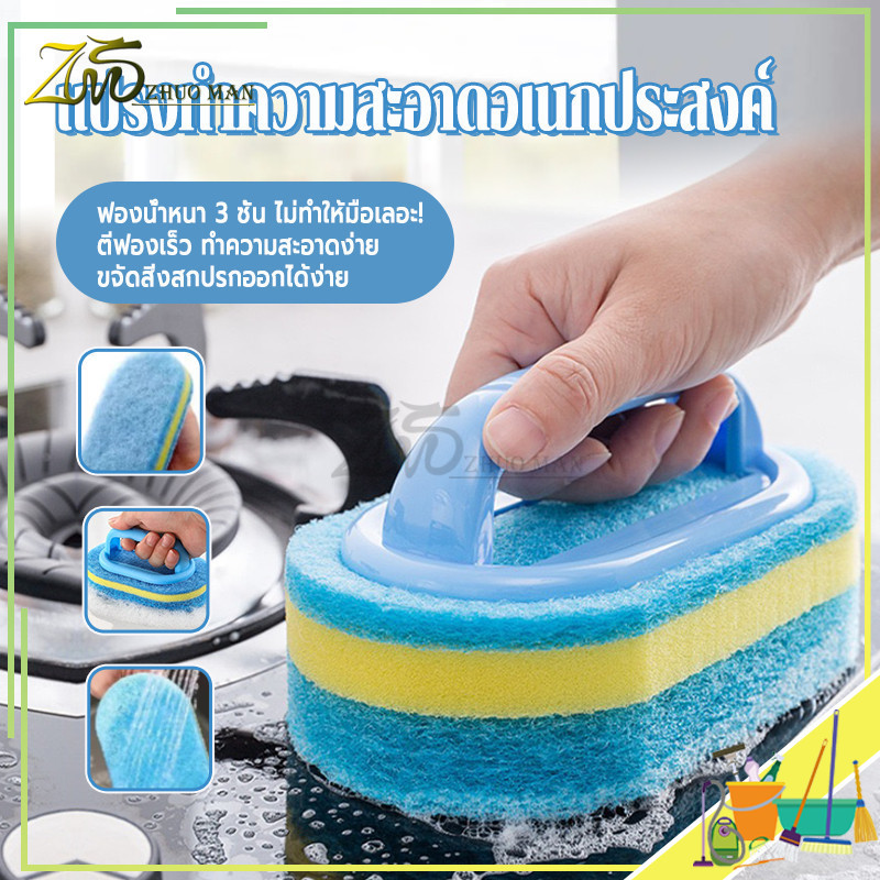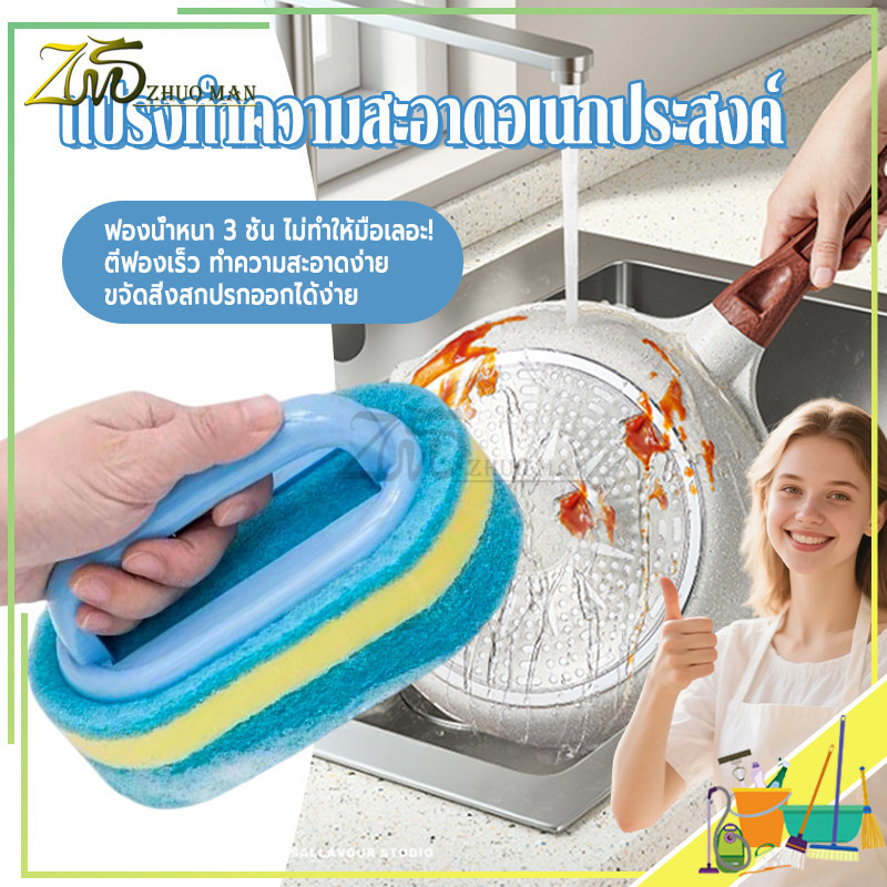 แปรงทำความสะอาดมีด้ามจับ แปรงทำความสะอาดอเนกประสงค์ แปรงขัด ฟองน้ำขัดพื้นผิว แปรงครัว อเนกประสงค์ มีด้ามจับกันลื่น ทนทา น