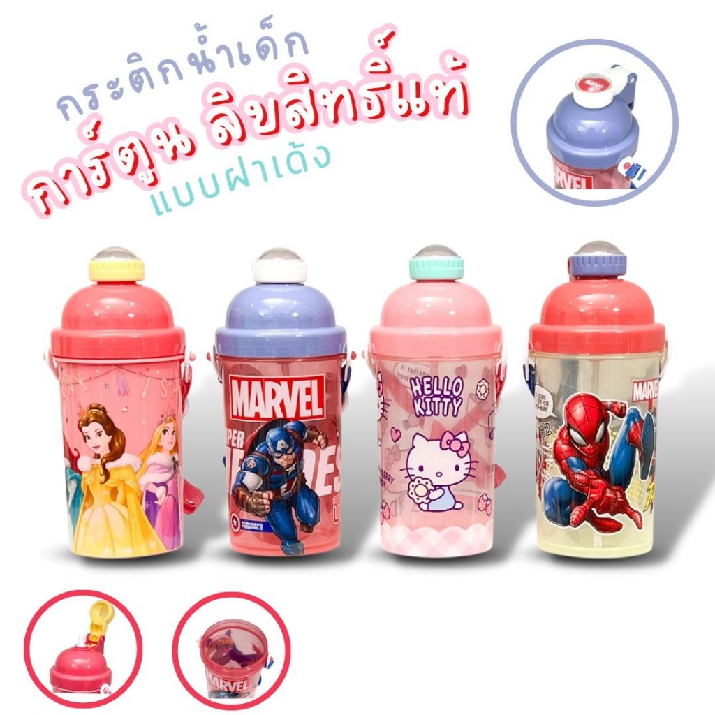 กระติกน้ำเด็กฝาเด้ง ลายการ์ตูน ลิขสิทธิ์แท้ ขนาด 500มล. มีสายคล้องคอ
