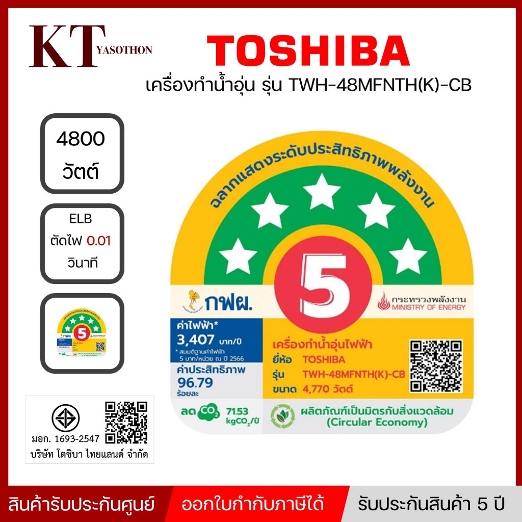 TOSHIBA เครื่องทำน้ำอุ่น ขนาด 4,800 วัตต์ รุ่น TWH-48MFNTH(K)-CB สีดำ