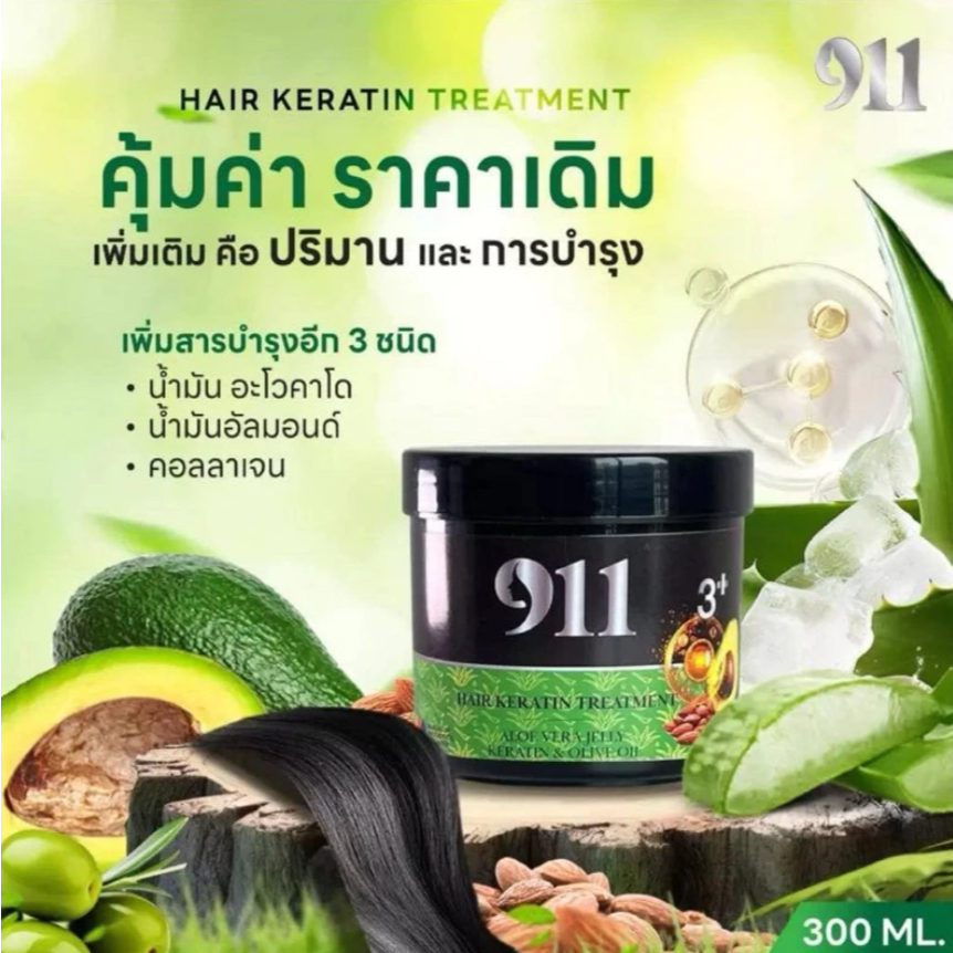 911 ทรีทเม้นท์ เคราติน สูตร3+ ปริมาณ 300 ml. (ของแท้รับจากบริษัท)