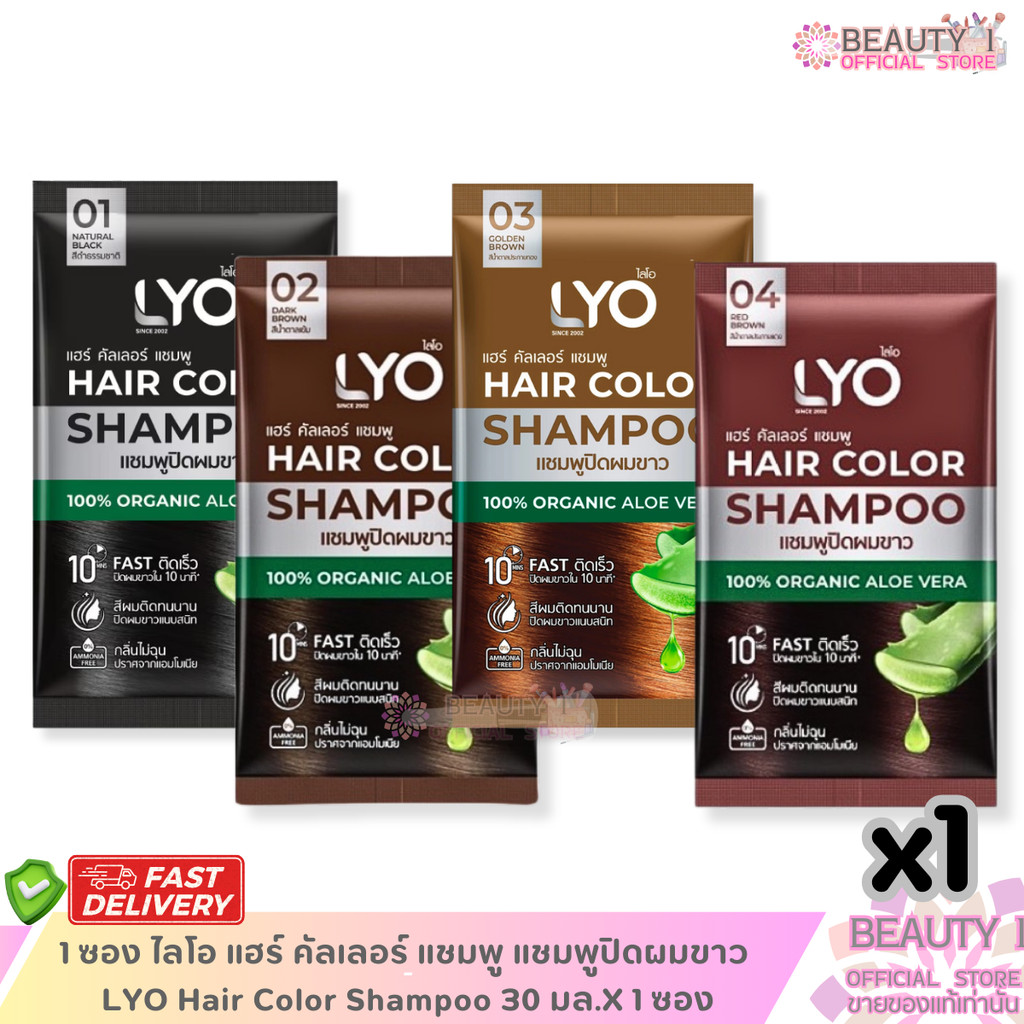 1 ซอง ไลโอ แฮร์ คัลเลอร์ แชมพู แชมพูปิดผมขาว LYO Hair Color Shampoo 30 มล.X 1 ซอง