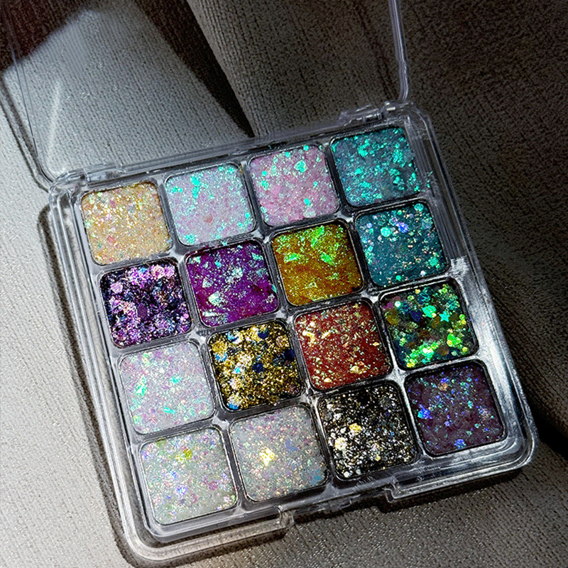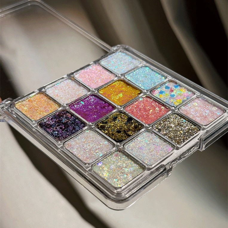 พาเลทอายแชโดว์ 16 สี พาเลทตา เงือก เลื่อม ประกายมุก แฟลช ไฮไลท์ สีสวย กันน้ำ ติดทน แบบพกพา