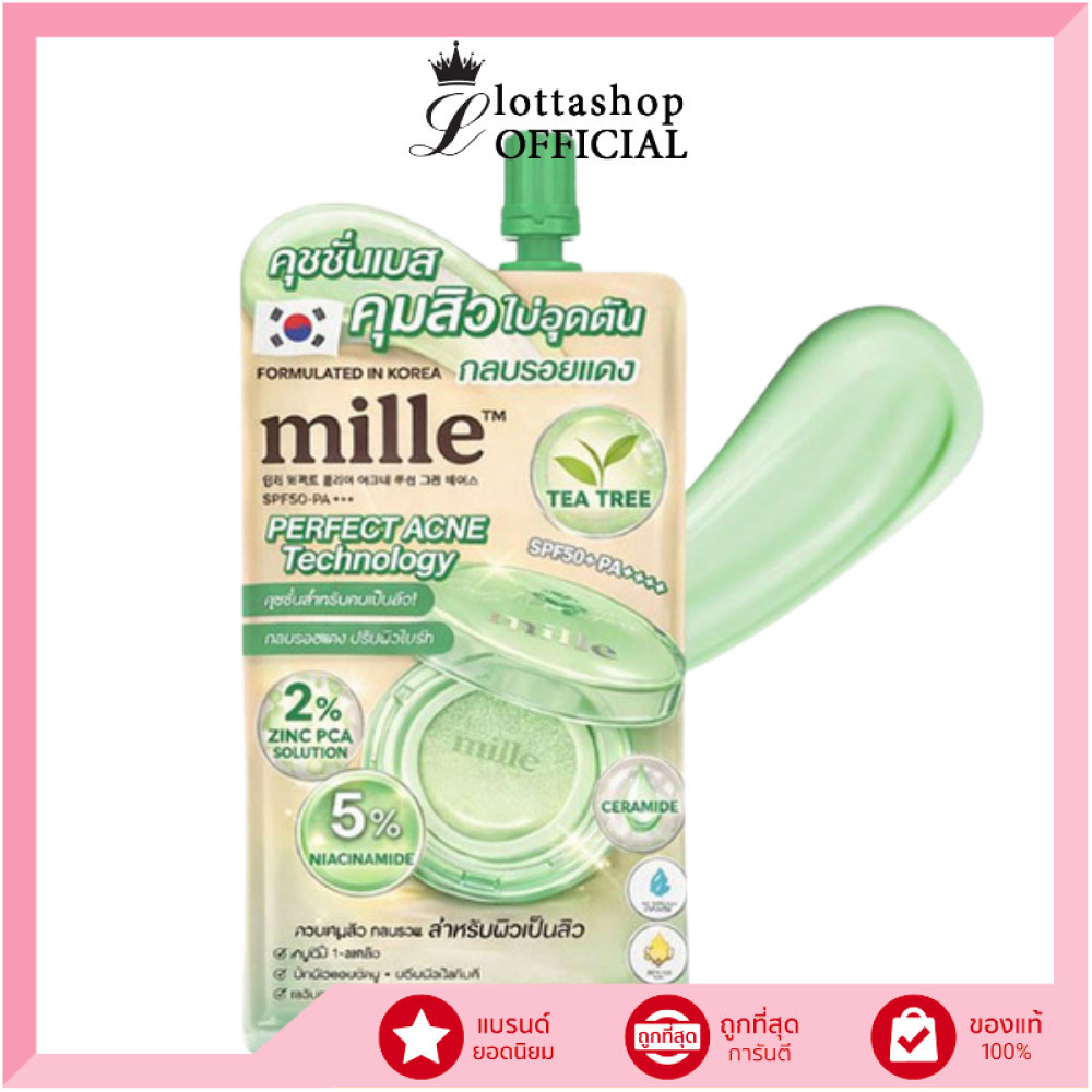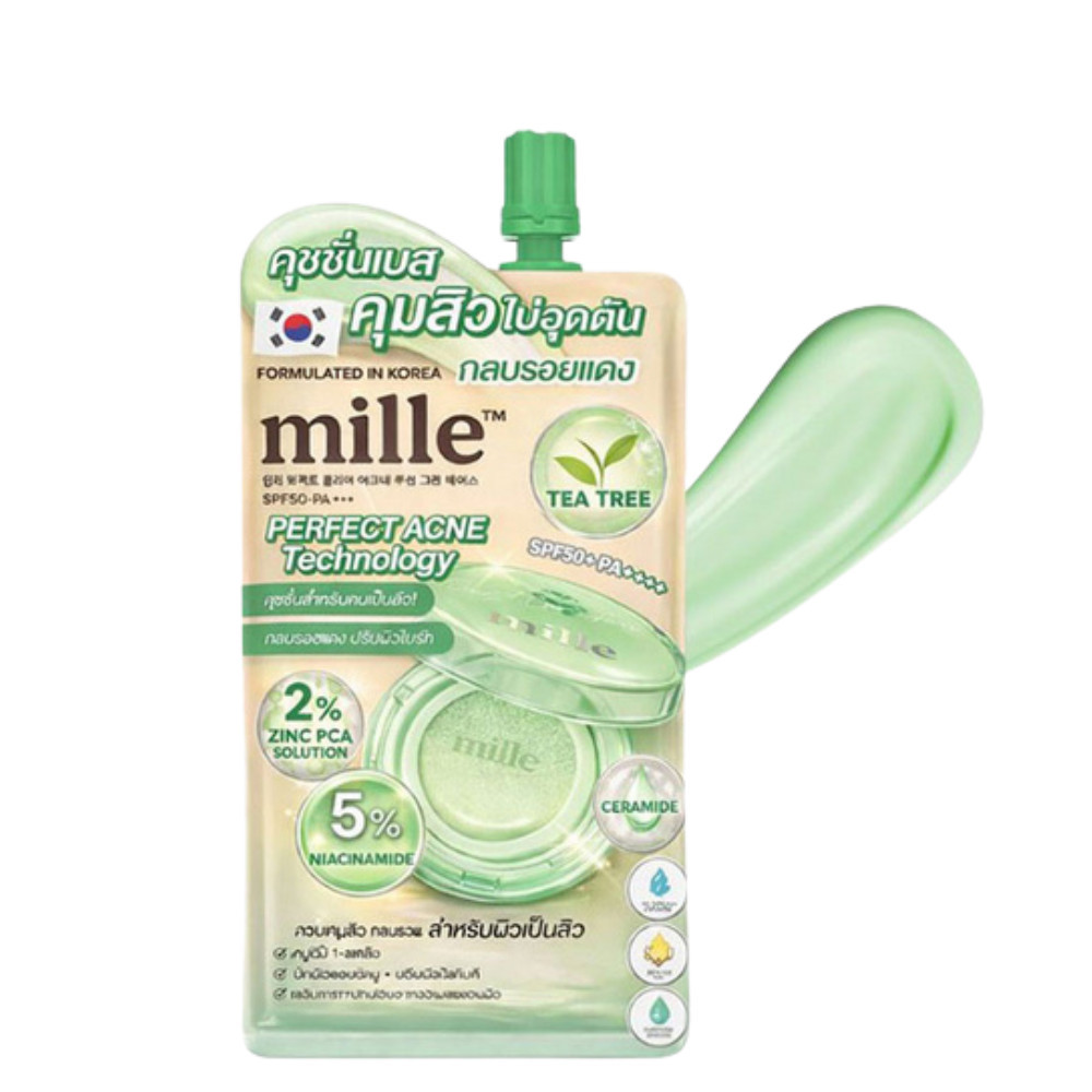 🔥แท้/ดีลสุดคุ้ม/ไลฟ์ทุกวัน🔥(1ซอง) MILLE PERFECT CLEAR ACNE CUSHION GREEN BASE SPF 50+ PA+++ 6 g. #คุชชั่นเบสเขียว