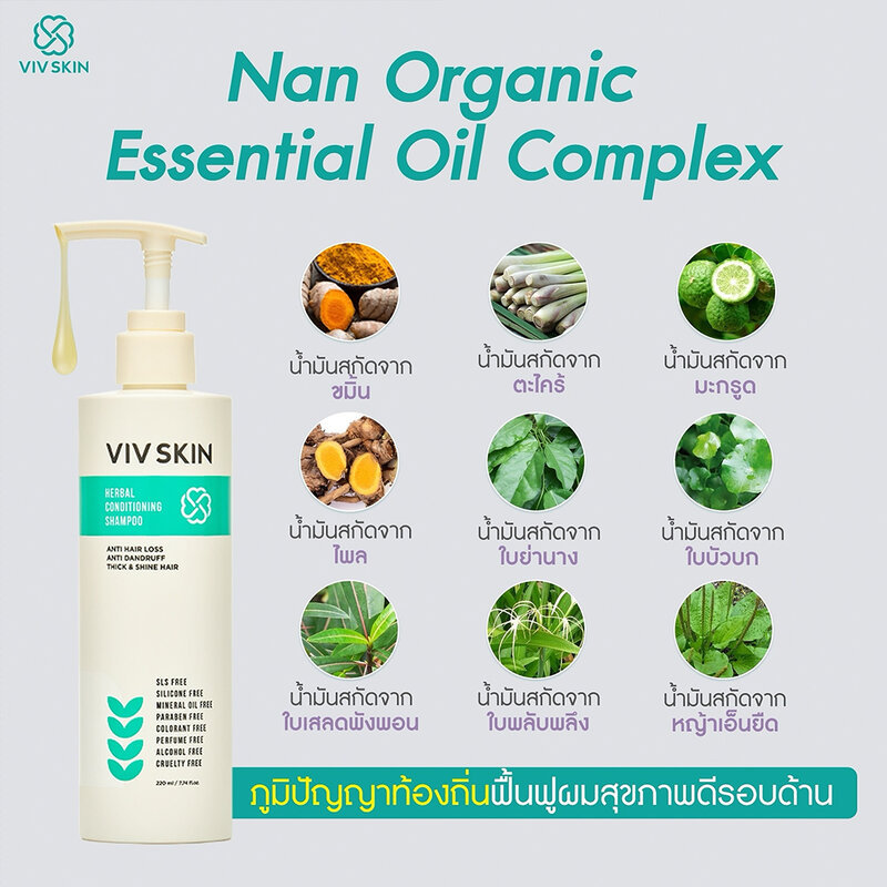 VIV SKIN Herbal Conditioning Shampoo 220ml แชมพูสมุนไพรแม่จุ๋ย วิฟสกิน ช่วยลดผมร่วง รังแค เพิ่มผมเกิดใหม่.