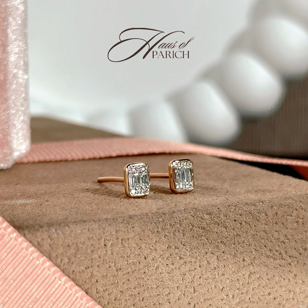 Haus of Parich | Emmie bar ✨🩷🤎 ต่างหูเพชรแท้ดีไซน์บาเกต PG18K พร้อมใบ Warranty card💎