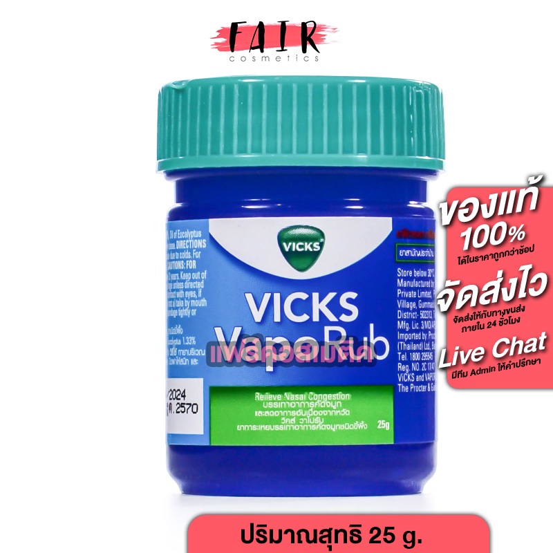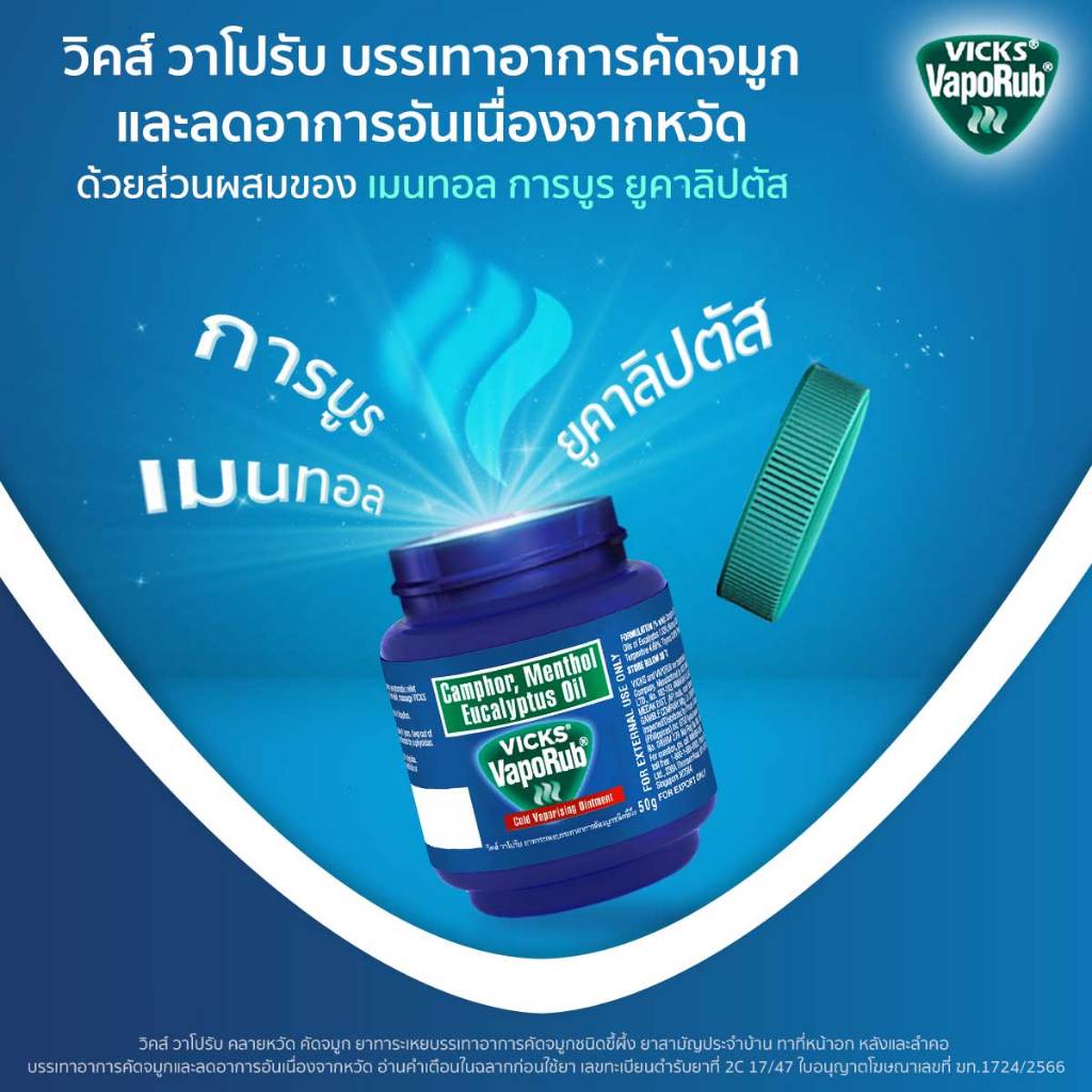 Vicks VapoRub วิคส์ วาโปรับ [สินค้ามีให้เลือก 3 ขนาด] ทาบรรเทาอาการหวัด คัดจมูก วิควาโปรับ