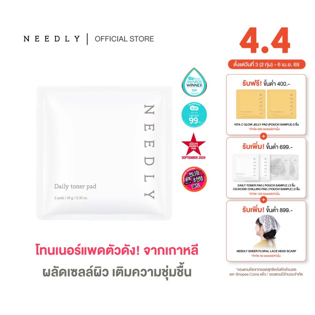 NEEDLY DAILY TONER PAD (POUCH SAMPLE 2 PCS ) นีดลีโทนเนอร์แพด ขนาดทดลอง ลดสิว ชุ่มชื้น กระชับรูขุมขน ในแผ่นเดียว
