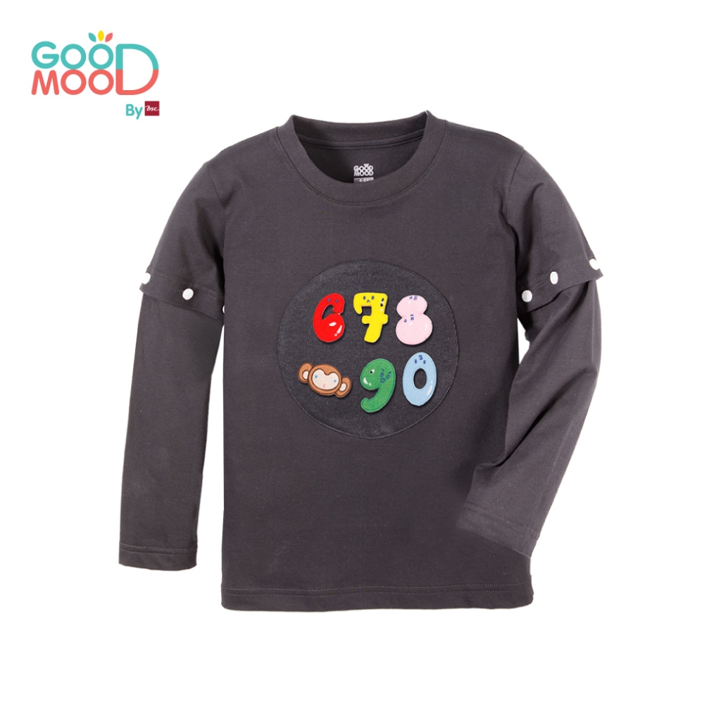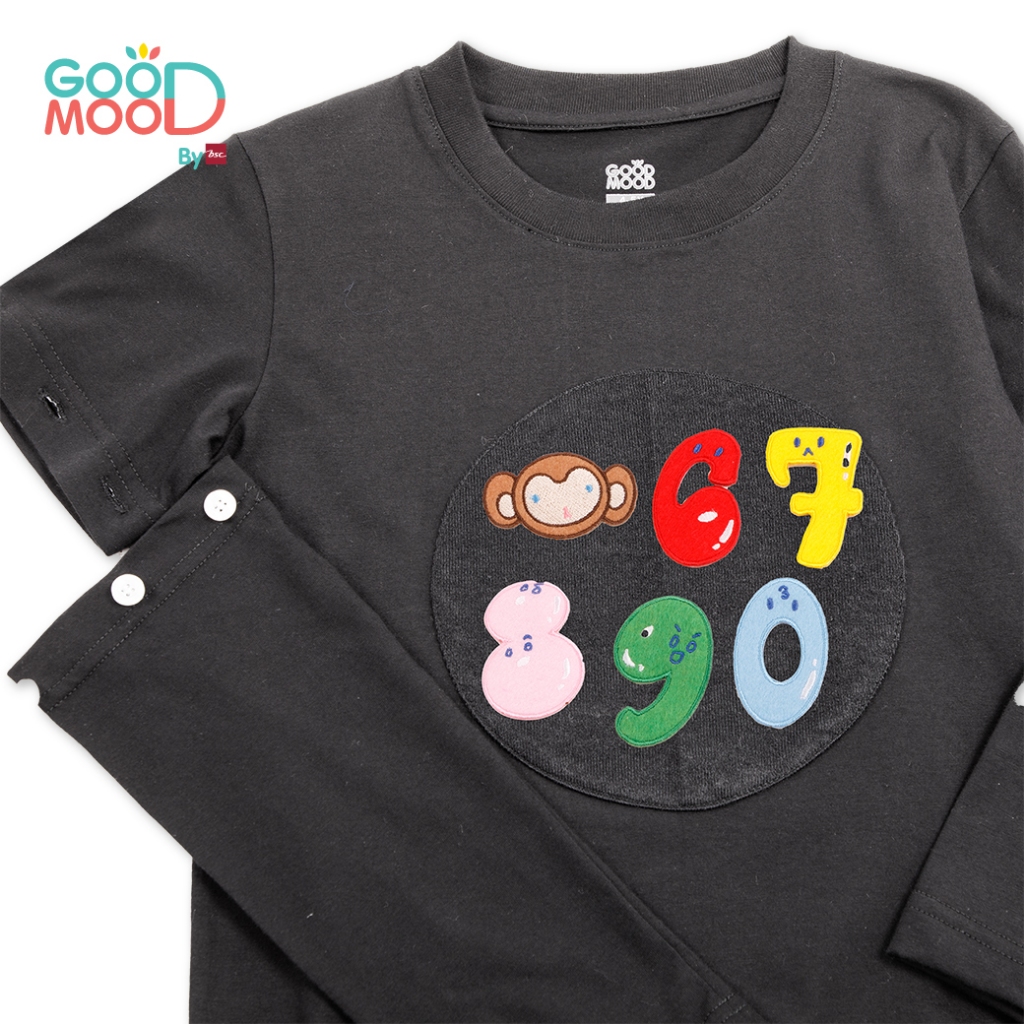 Good Mood by bsc เสื้อยืดคอกลมแขนยาวถอดแขน สีดำ + PATCHES ลายตัวเลข 6 ชิ้น สำหรับเด็กอายุ 6-7 ปี ผ้าคอตตอน
