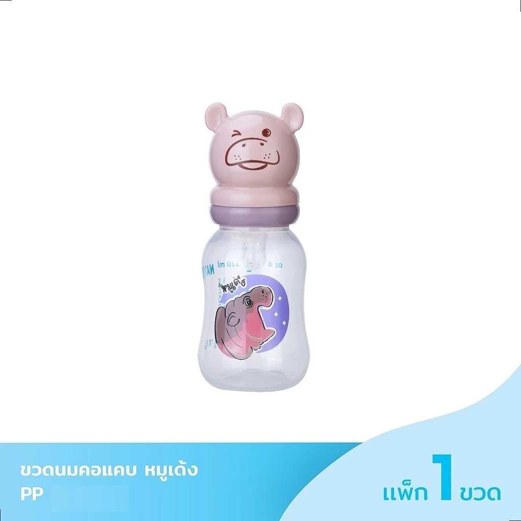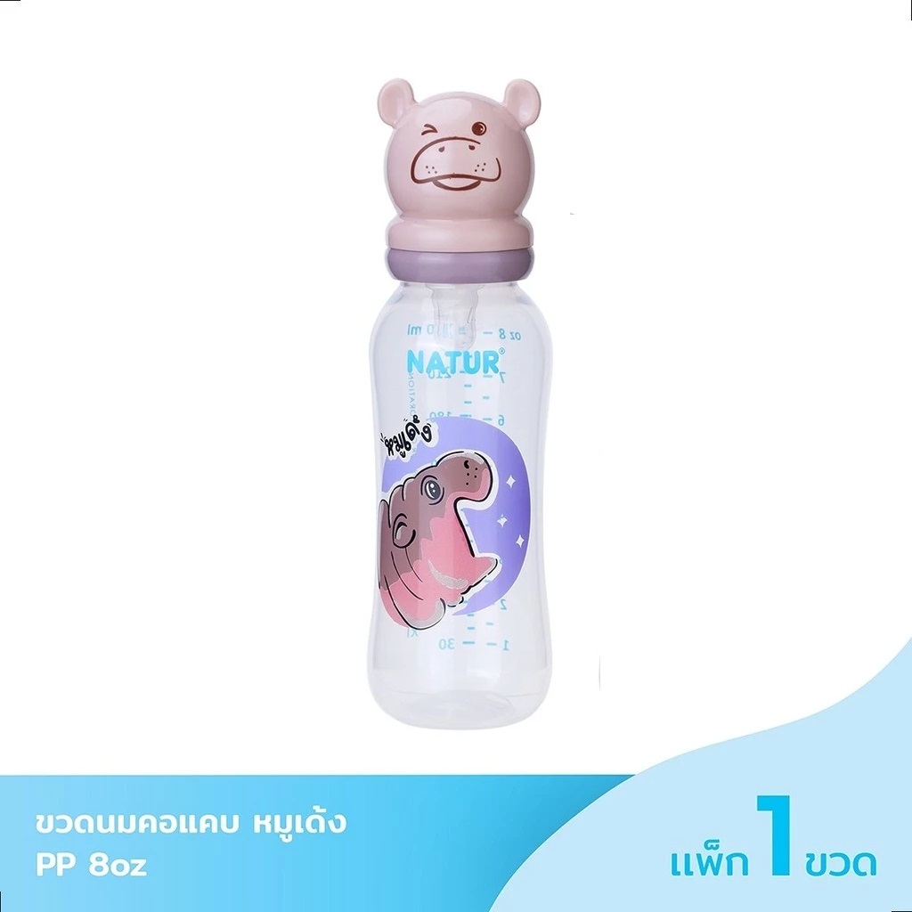 NATUR เนเจอร์ X หมูเด้ง ขวดนมคอแคบฝาหมูเด้ง ขนาด 4oz / 8oz 1 ขวด