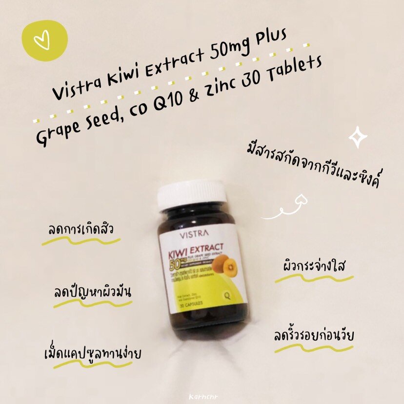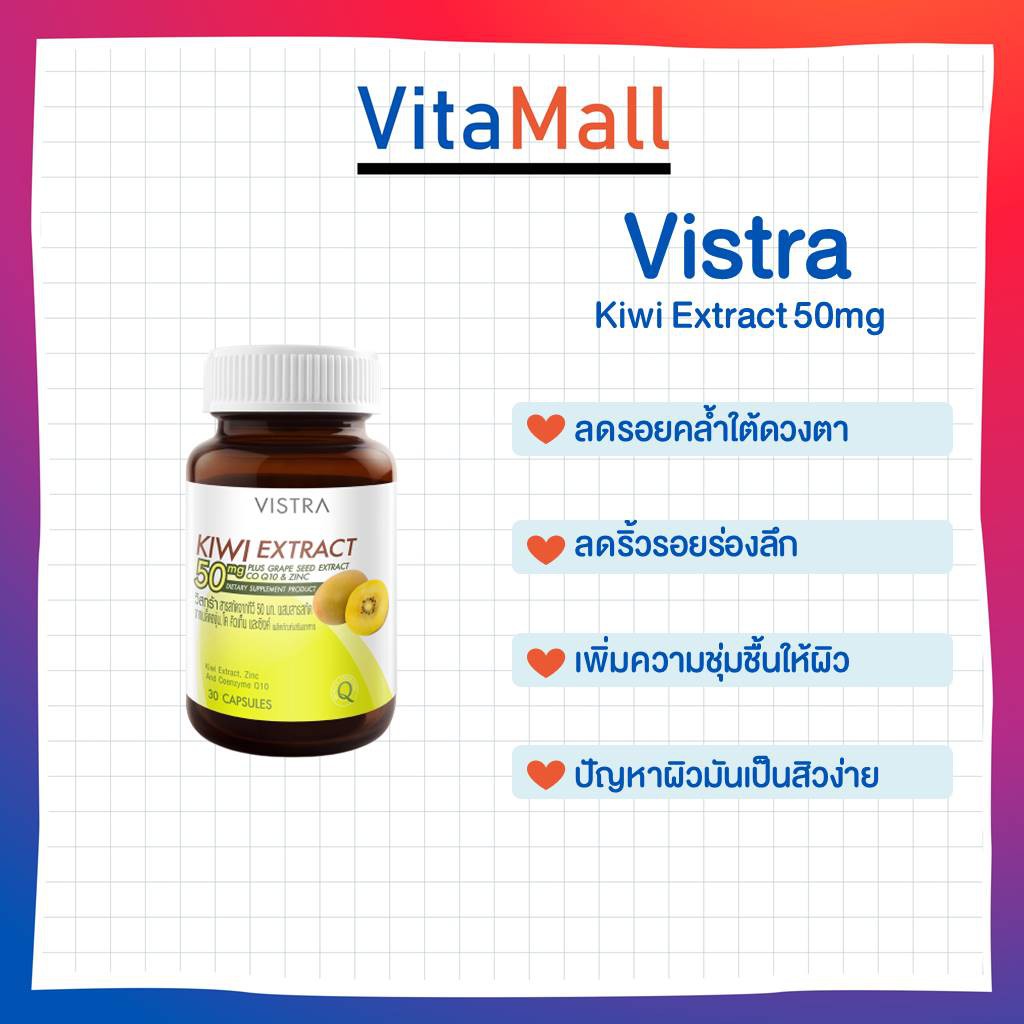 Vistra Kiwi Extract วิสทร้า สารสกัดกีวี่ 30 แคปซูล ช่วยลดการเกิดสิว ลดการอักเสบของสิว สิวหัวหนอง สิวหัวช้าง