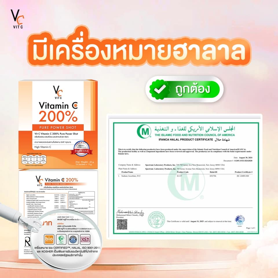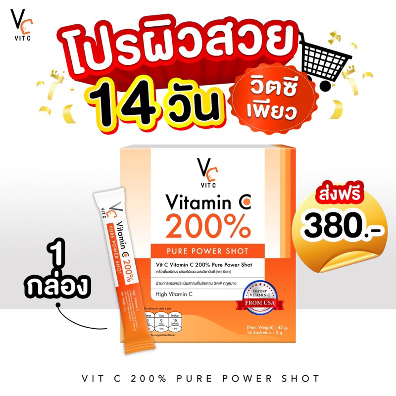 (ของแท้+พร้อมส่ง) วิตซีเพียว200%🧡 VitaminC200% Pure Power Shot 🧡 VC200% วิตซีผง วิตซีกรอกปาก 🧡 VitCpure200% 🧡🍊🍹