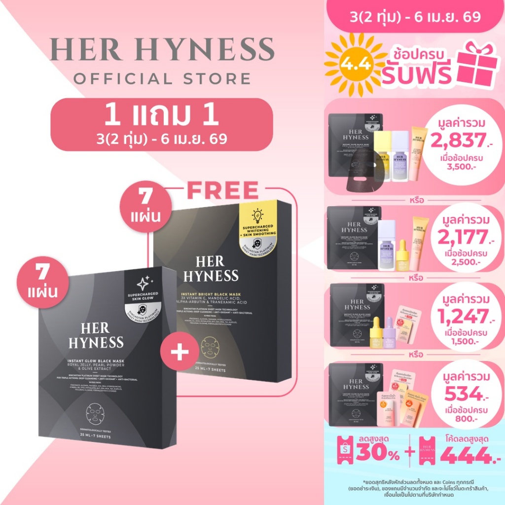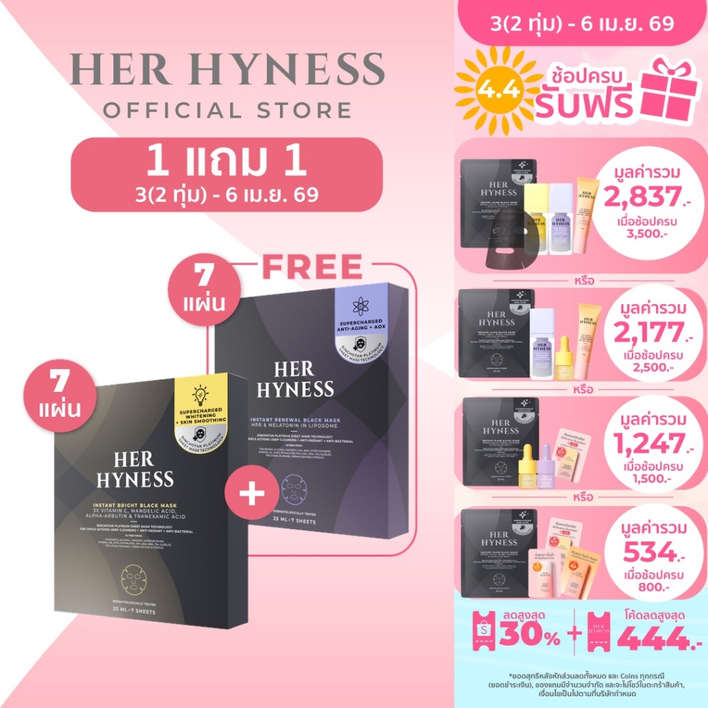 HER HYNESS BLACK MASK BOX DUO คละสูตรได้ มาส์กดำ 2 กล่อง รวมมาส์ก fix ทุกปัญหาผิว